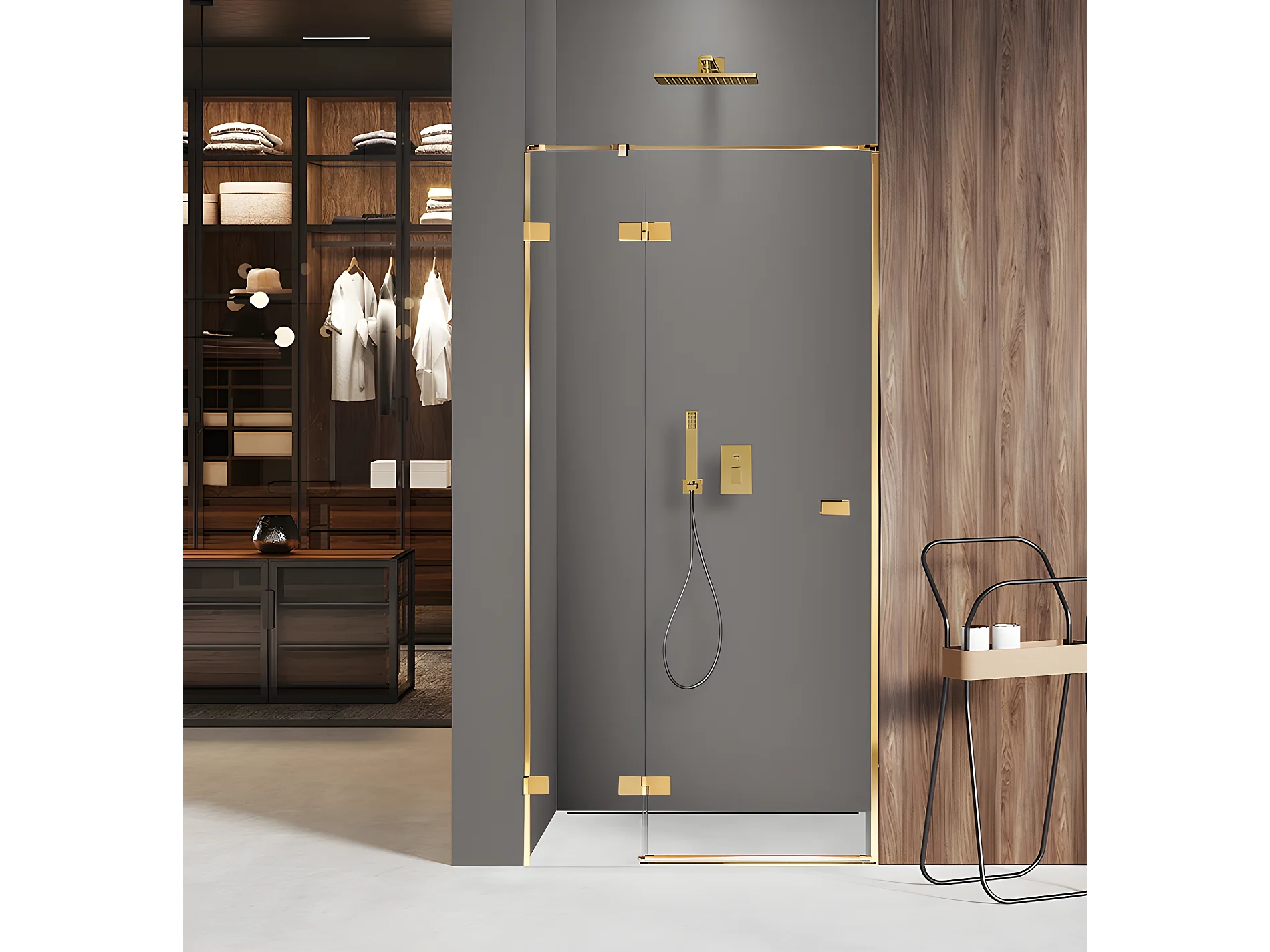 Porte de douche 90 cm doré pivotante gauche MIAMI GOLD