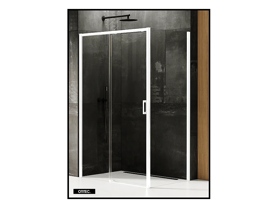 Porte de Douche avec Paroi Latérale (ouverture depuis l'angle) - 150 x 100 x 200 - BLANC MAT - PRIME - GAUCHE