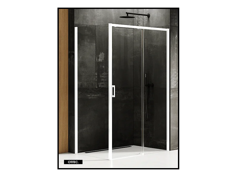 Porte de Douche avec Paroi Latérale (ouverture depuis l'angle) - 150 x 80 x 200 - BLANC MAT - PRIME - DROITE