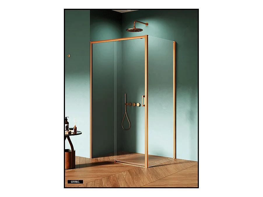 Porte de Douche avec Paroi Latérale (ouverture depuis l'angle) - 160 x 100 x 200 - CUIVRE BROSSÉ - PRIME - GAUCHE