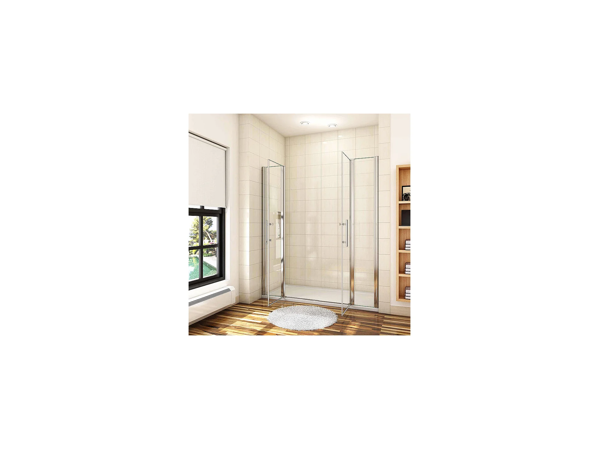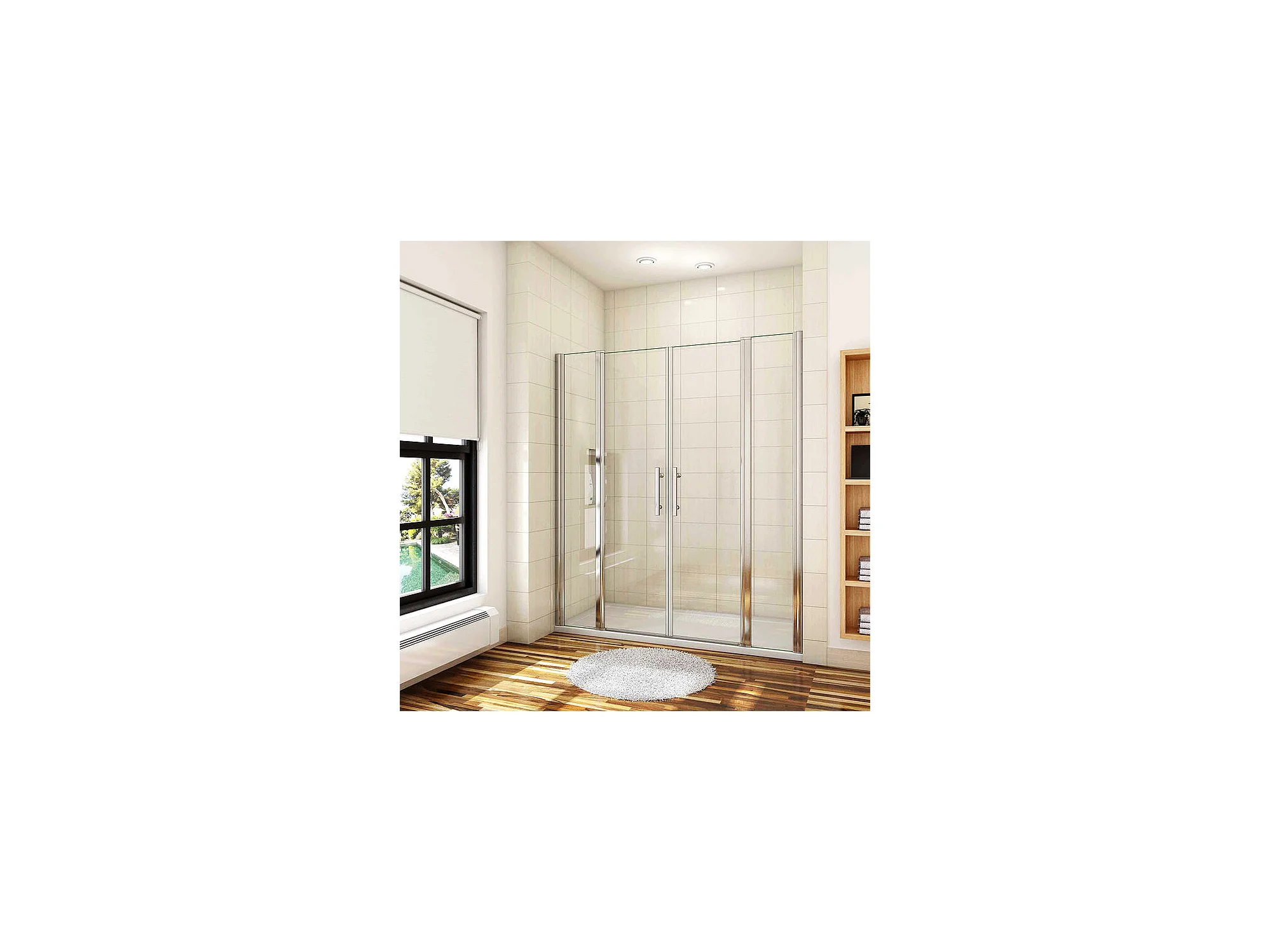 Porte de douche battante H.197cm largeur réglable 144 à 149.4cm, paroi pivotante 180° - Avec 2 éléments fixes - 6mm verre transparent