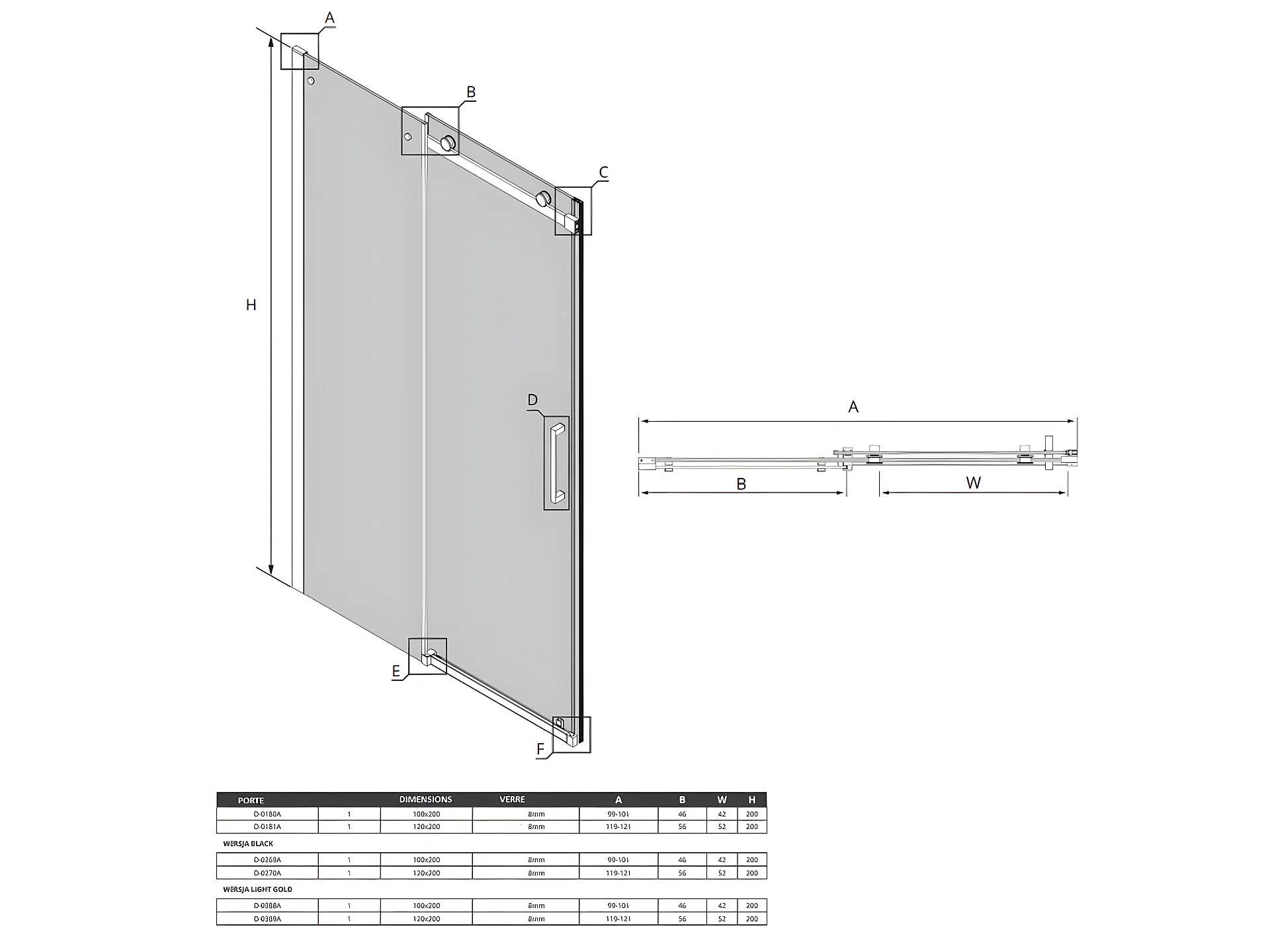 Porte de douche coulissante 100 cm doré brossé FIDJI GOLD BRUSHED