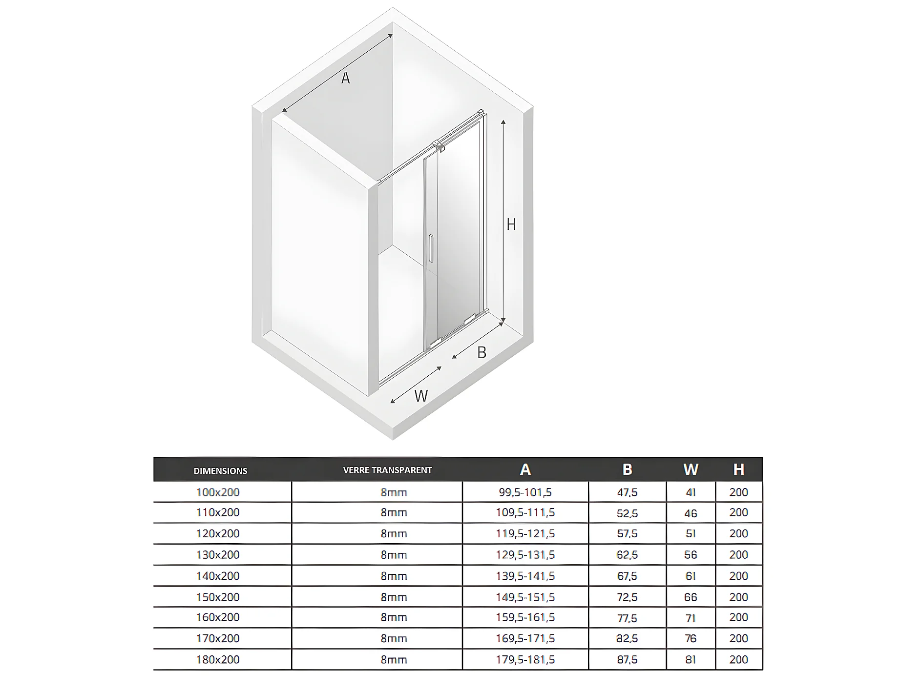Porte de douche dorée 140 cm 2 volets coulissante gauche HAWAII GOLD