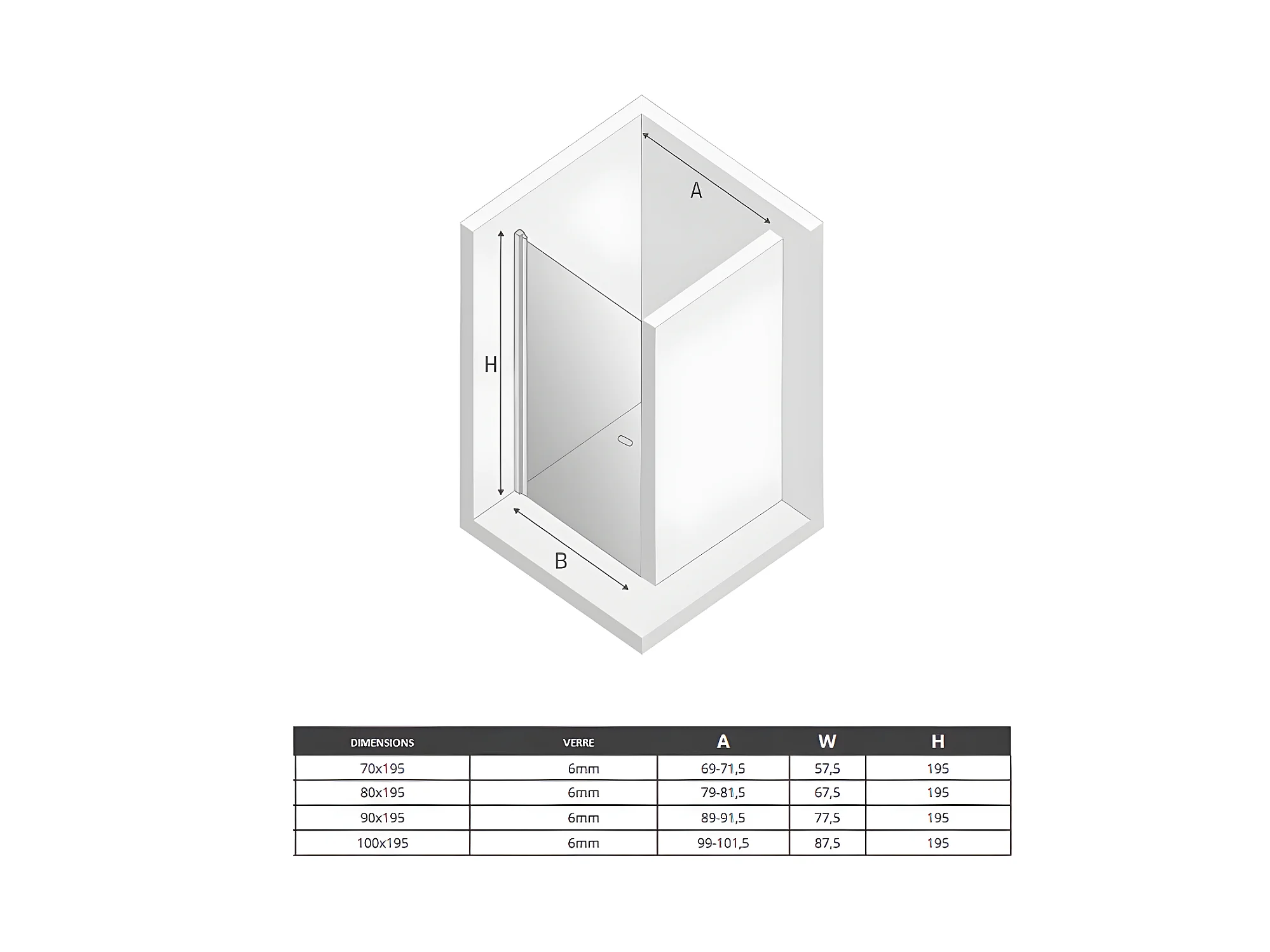 Porte de douche pivotante 100 cm noir RHODES BLACK