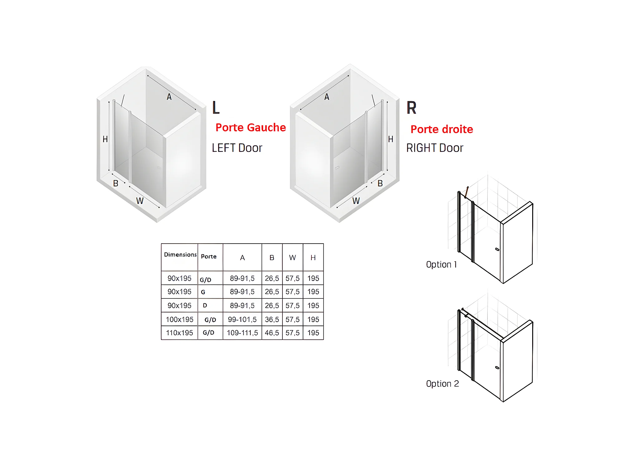Porte de douche pivotante 110 cm noir RHODES BLACK
