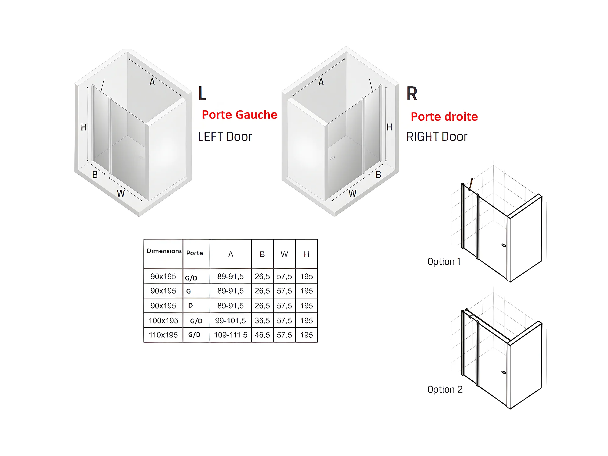 Porte de douche pivotante 90 cm cuivre brossé MONAKO COPPER BRUSHED