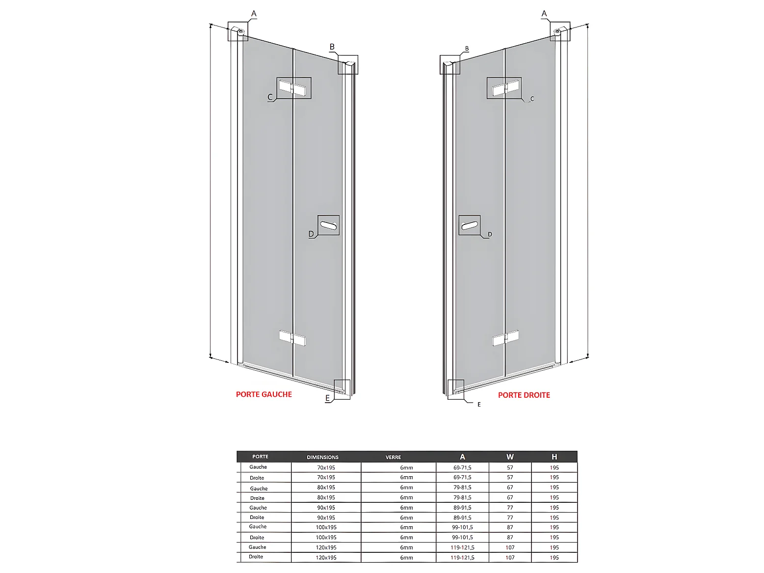 Porte de douche pliante droite 70 cm inox brossé ANTILLES GUNMETAL BRUSHED
