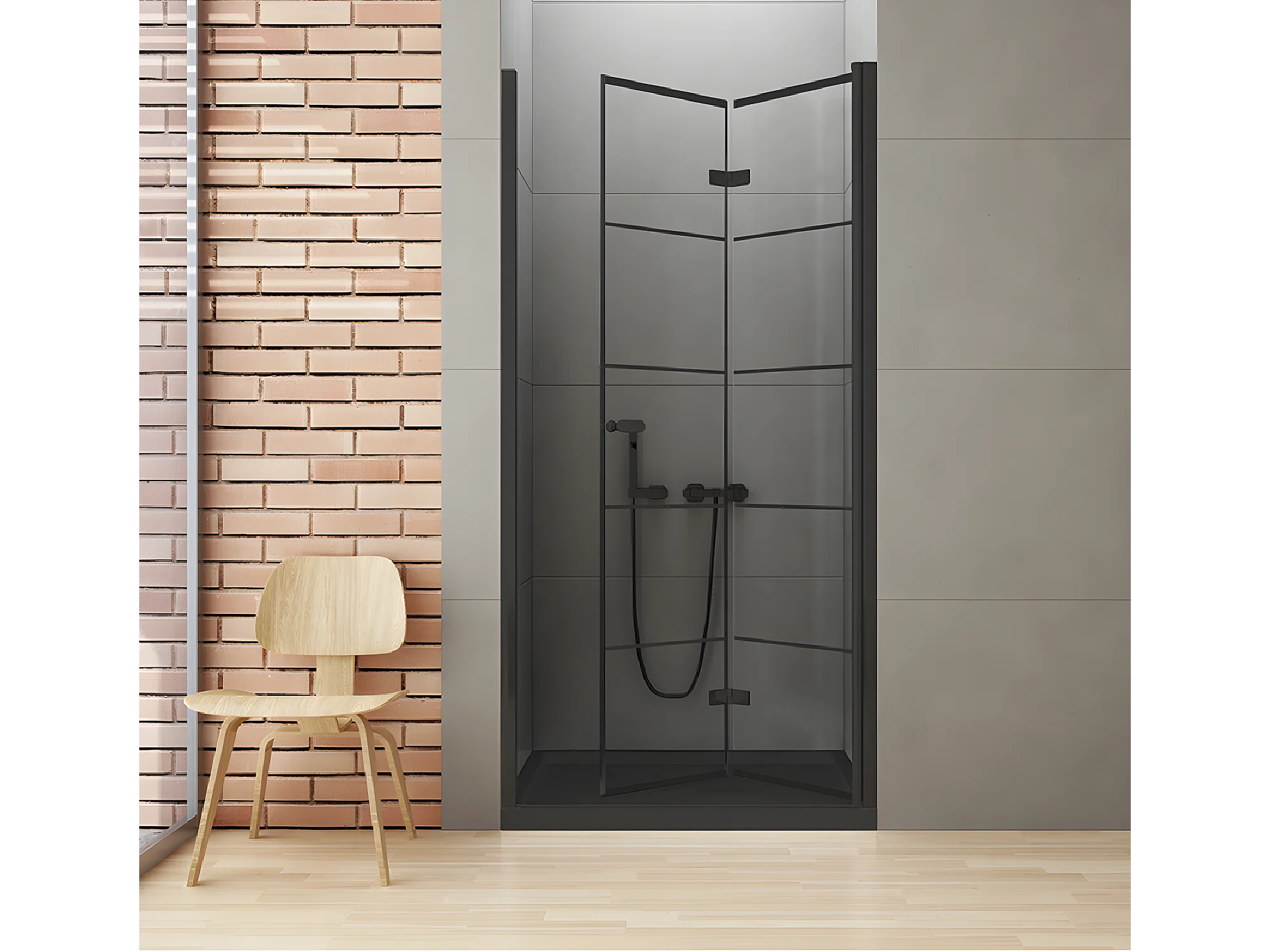 Porte de douche pliante droite serigraphiée 90 cm noire RHODES BLACK
