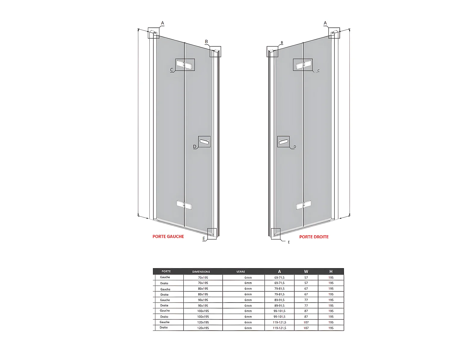 Porte de douche pliante gauche 90 cm cuivre brossé MONAKO COPPER BRUSHED