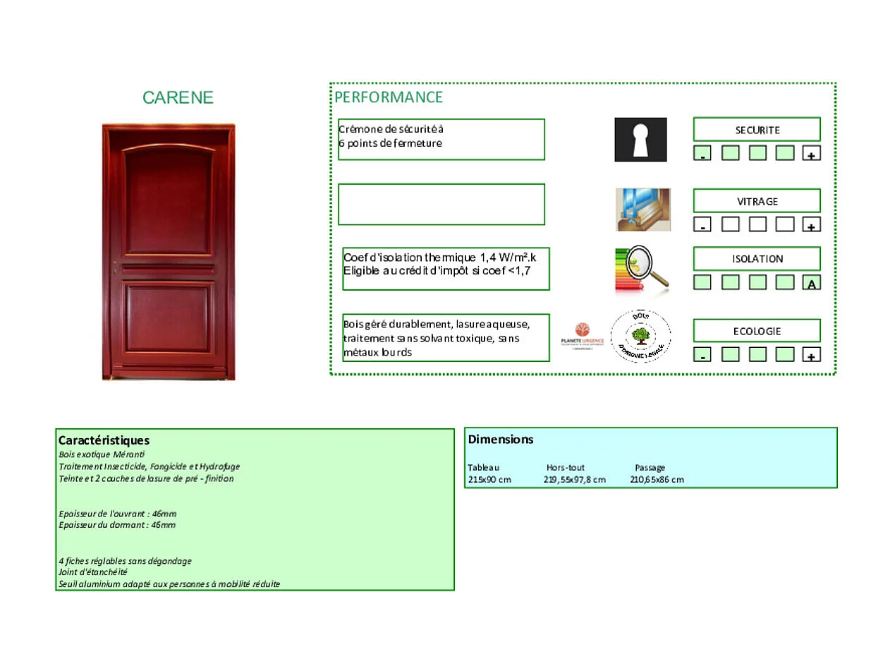 Porte D'entrée Bois Pleine Carene Rouge Ral 3004, H.215xl.90 Côte Tableau P.gauche Gd Menuiseries