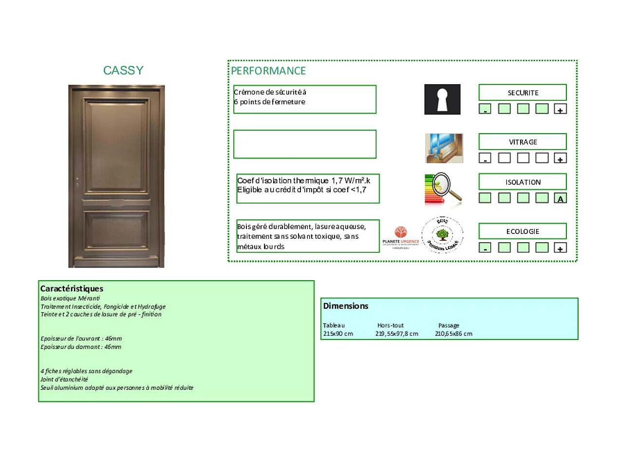 Porte D'entrée Bois Pleine Cassy Gris Quartz, H.215xl.90 Cm Côte Tableau P.droit Gd Menuiseries