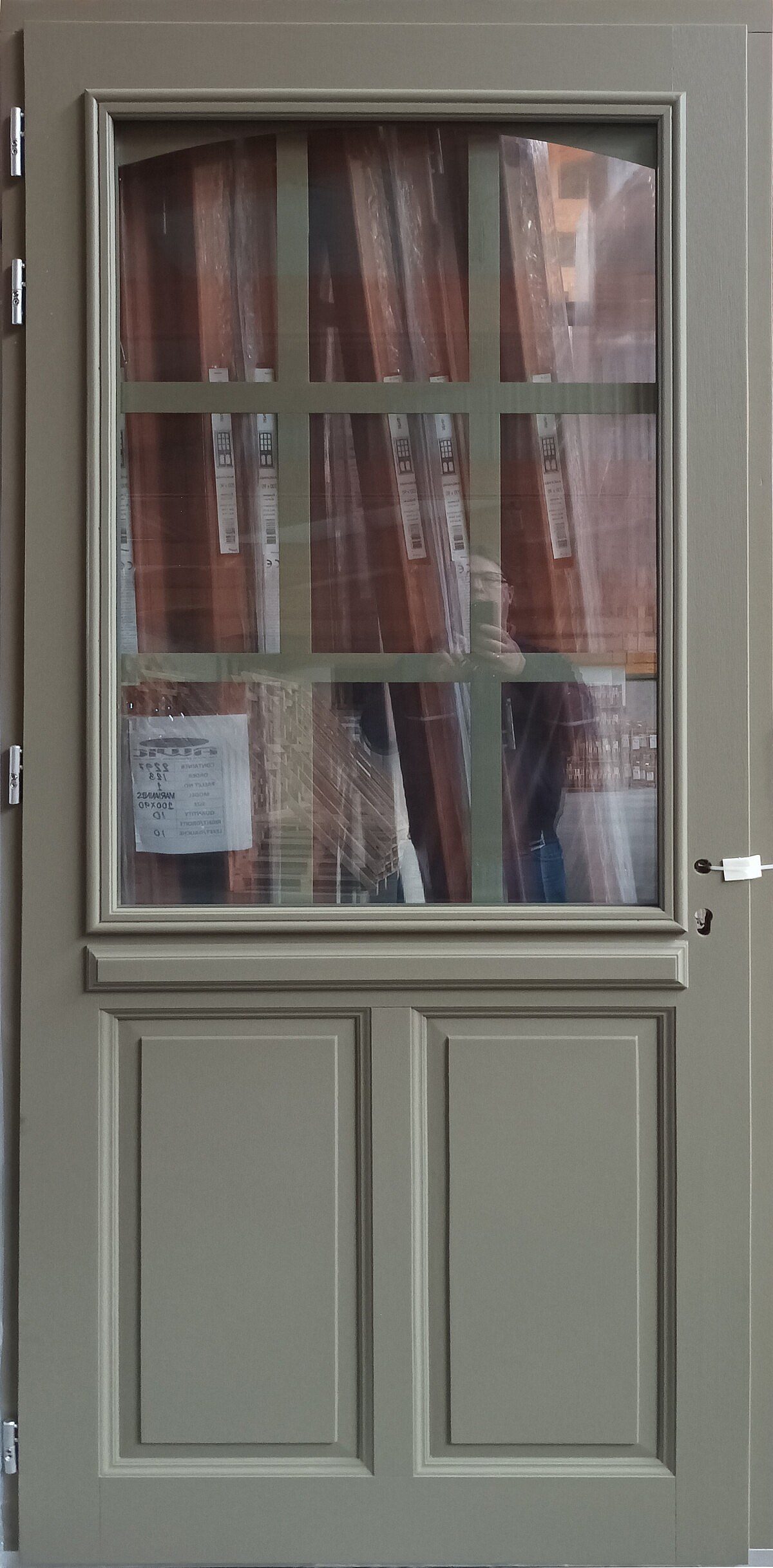 Porte d'entree Bois vitree, Ady , Vert RAL7002,, H,215xl,90 p, droit + Poignee Et Barillet (ref010723NO) Cote Tableau