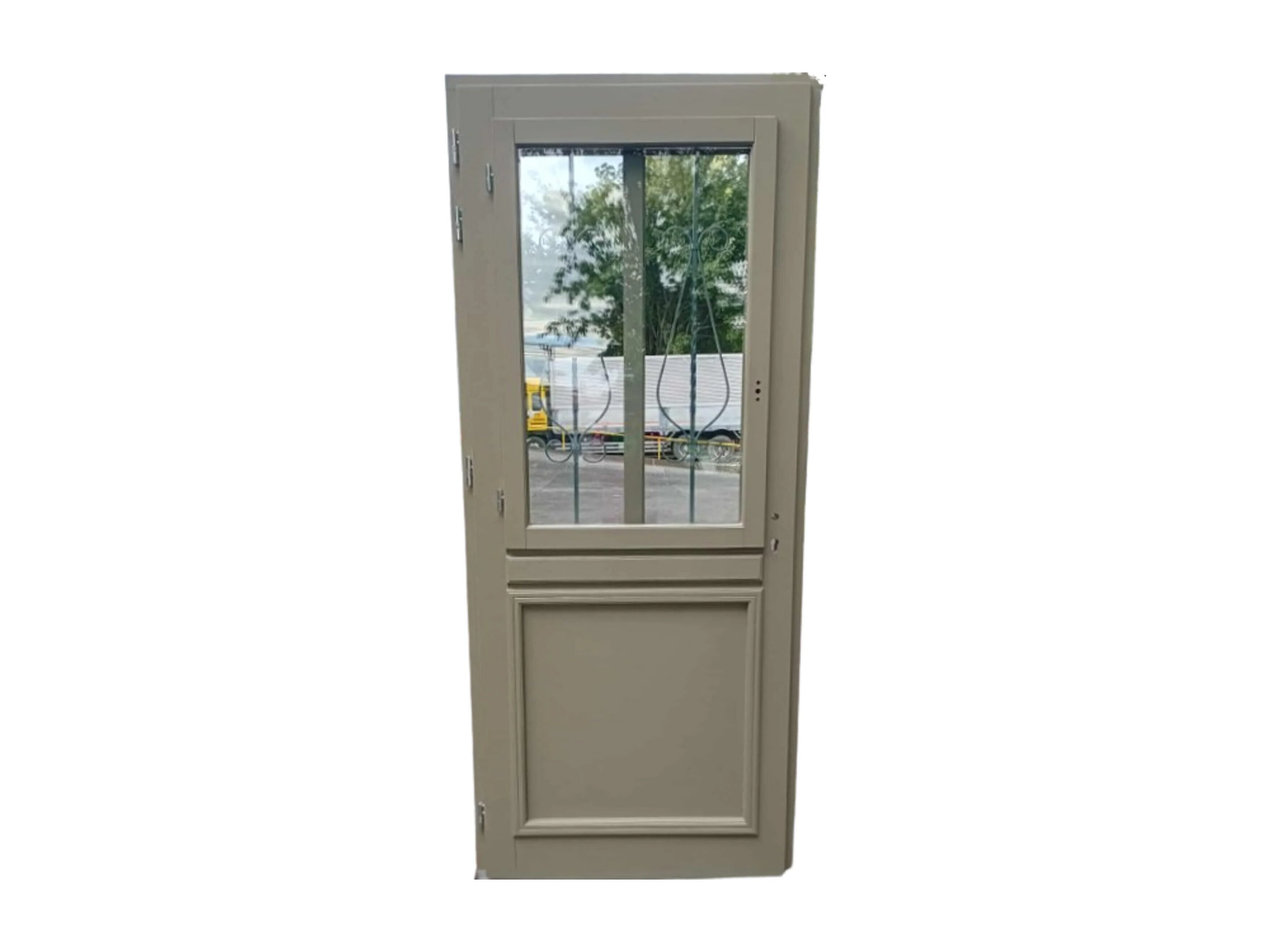 Porte D'entrée Bois Vitrée Baptiste Vert Ral 7002, H.200 X L.90 Cm Côte Tableau P.droit Gd Menuiseries