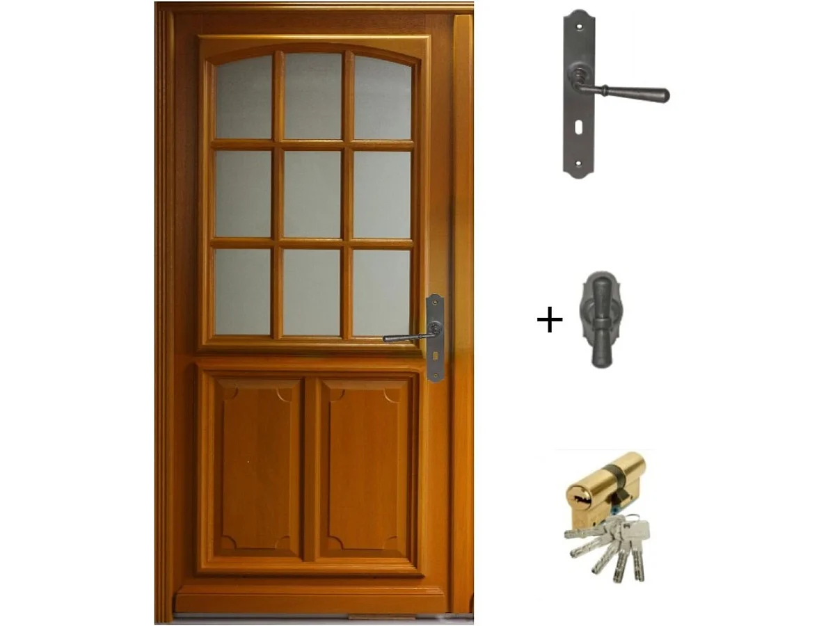 Porte D'entrée Bois Vitrée Marine, H.200 X L.90 P,gauche, Poignée, Barillet Cotes Tableau Gd Menuiseries