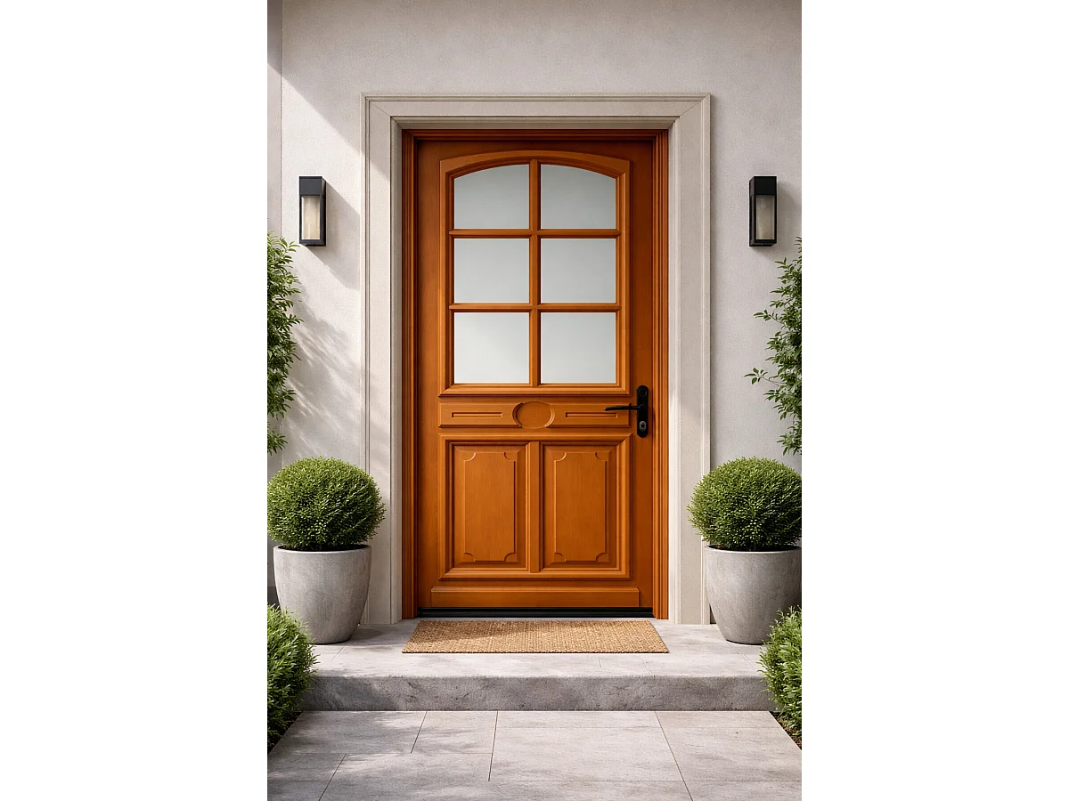 Porte D'entrée Bois Vitrée Marine, H.215xl.80 Côte Tableau, P.gauche , Poignée, Barillet Gd Menuiseries