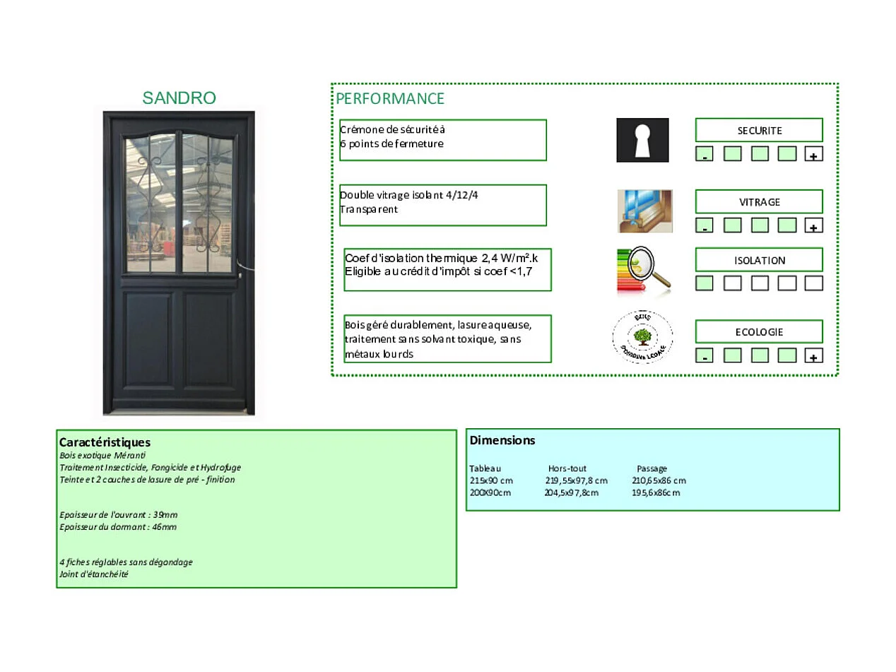 Porte D'entrée Bois Vitrée Sandro Gris Anthr., H200 X L90 Cm Côte Tableau P.gauche Gd Menuiseries