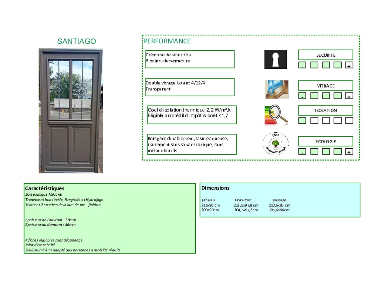 Porte D'entrée Bois Vitrée Santiago Gris Quartz, H215 X L90 Cm Côte Tableau, P.droit Gd Menuiseries