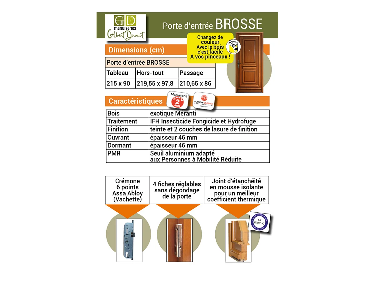 Porte d'entree Bois pleine, Tahi 1, H,215xl,90 p, droit Cotes Tableau