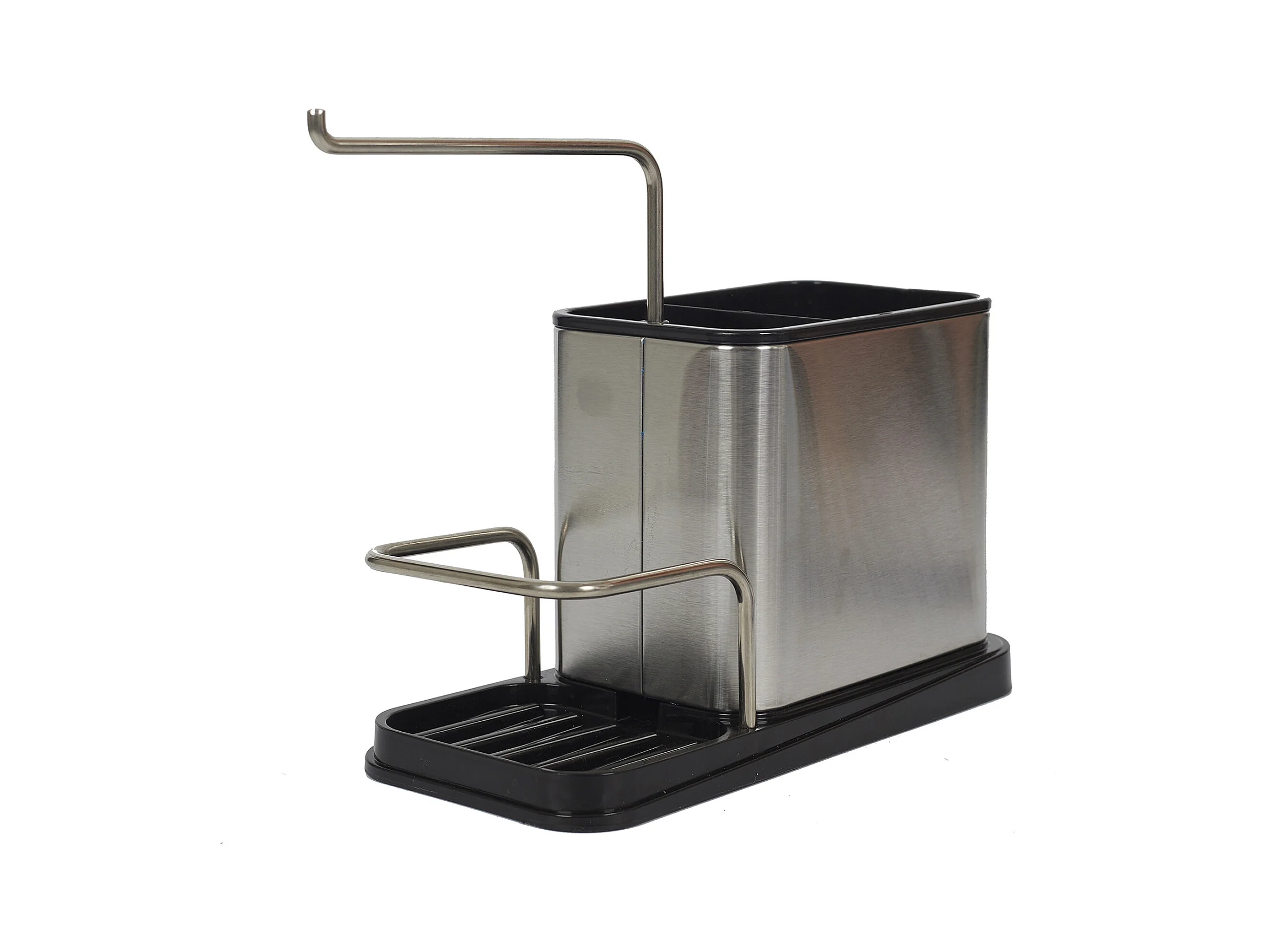 Porte Eponge Et Brosse Inox 22x10x13cm Argent, Noir