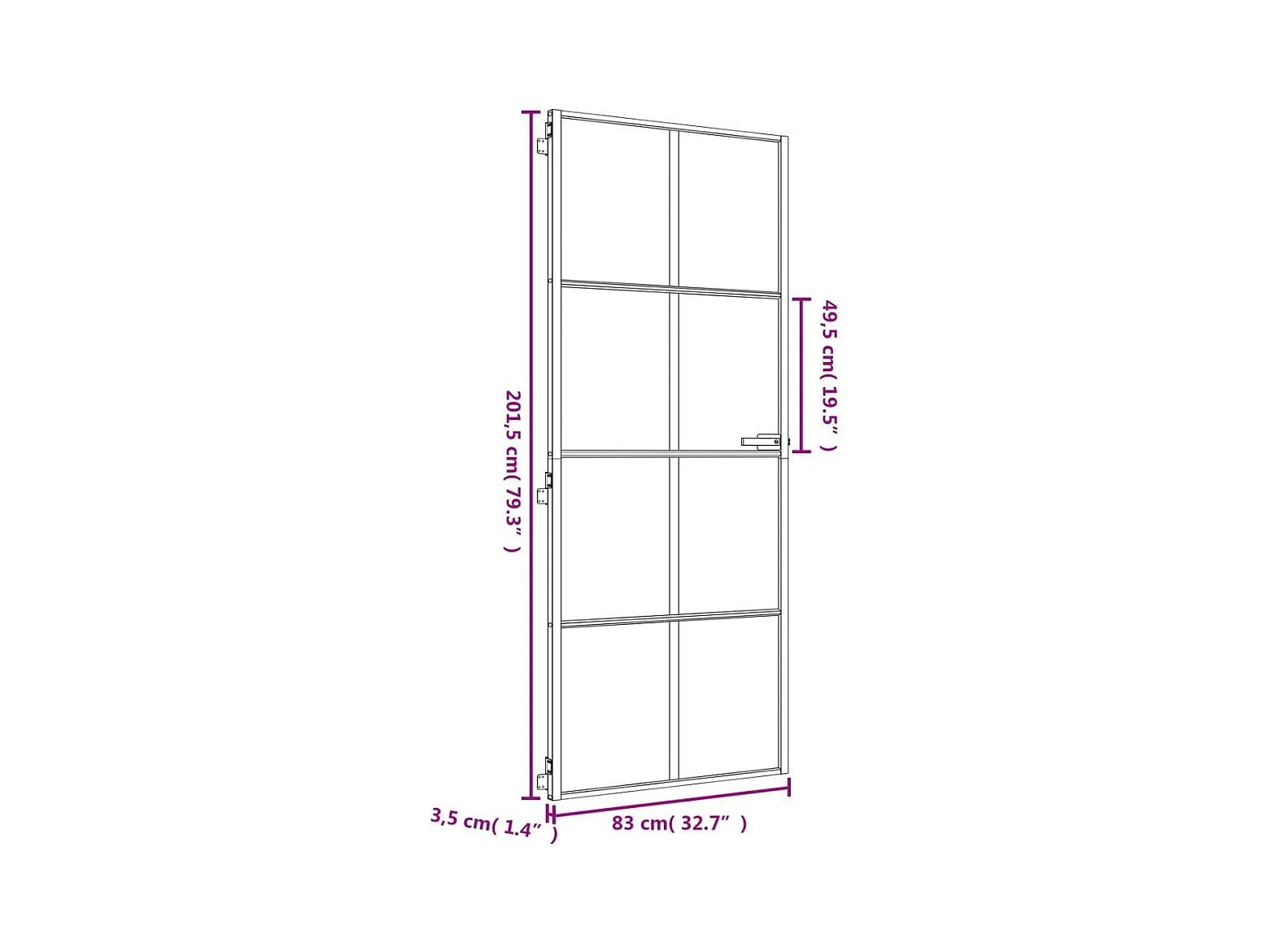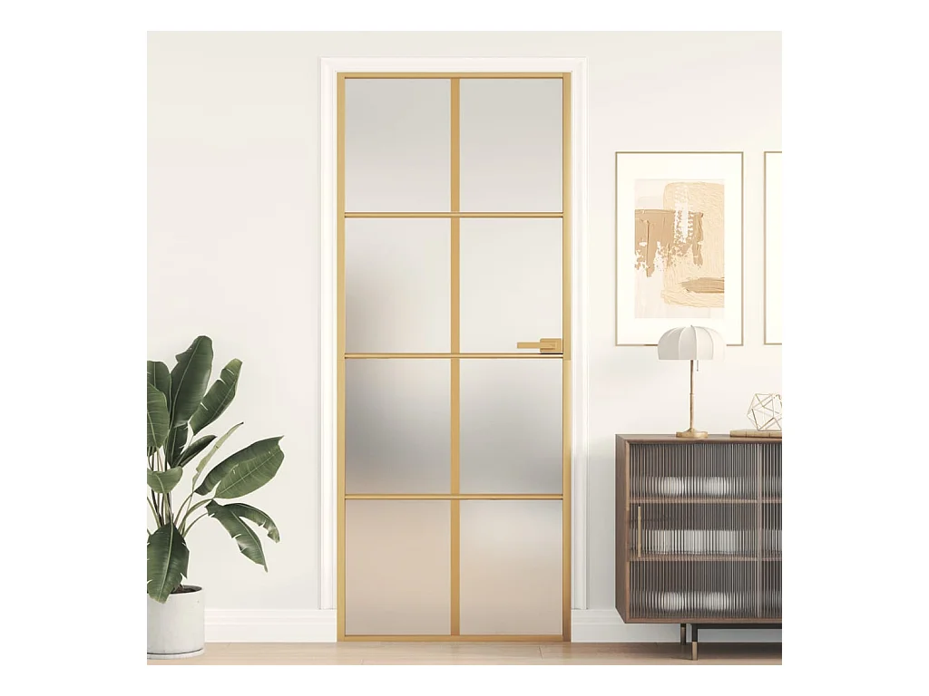 Porte intérieure mince doré 83x201,5 cm verre trempé aluminium