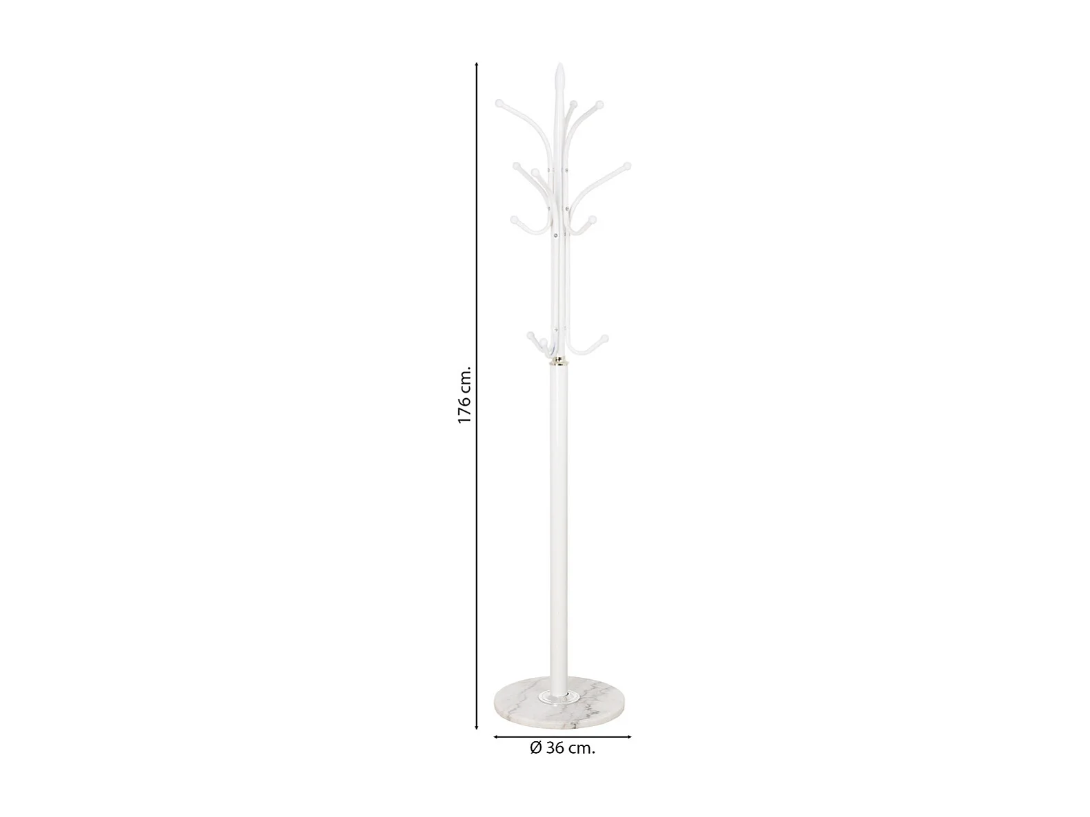 Porte-manteau avec 8 crochets en métal coloris blanc - longueur 29 x profondeur 29 x hauteur 176 cm