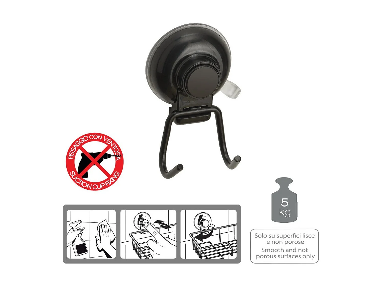 Porte-Manteau En Métal Noir Mat Avec Ventouse | Menta