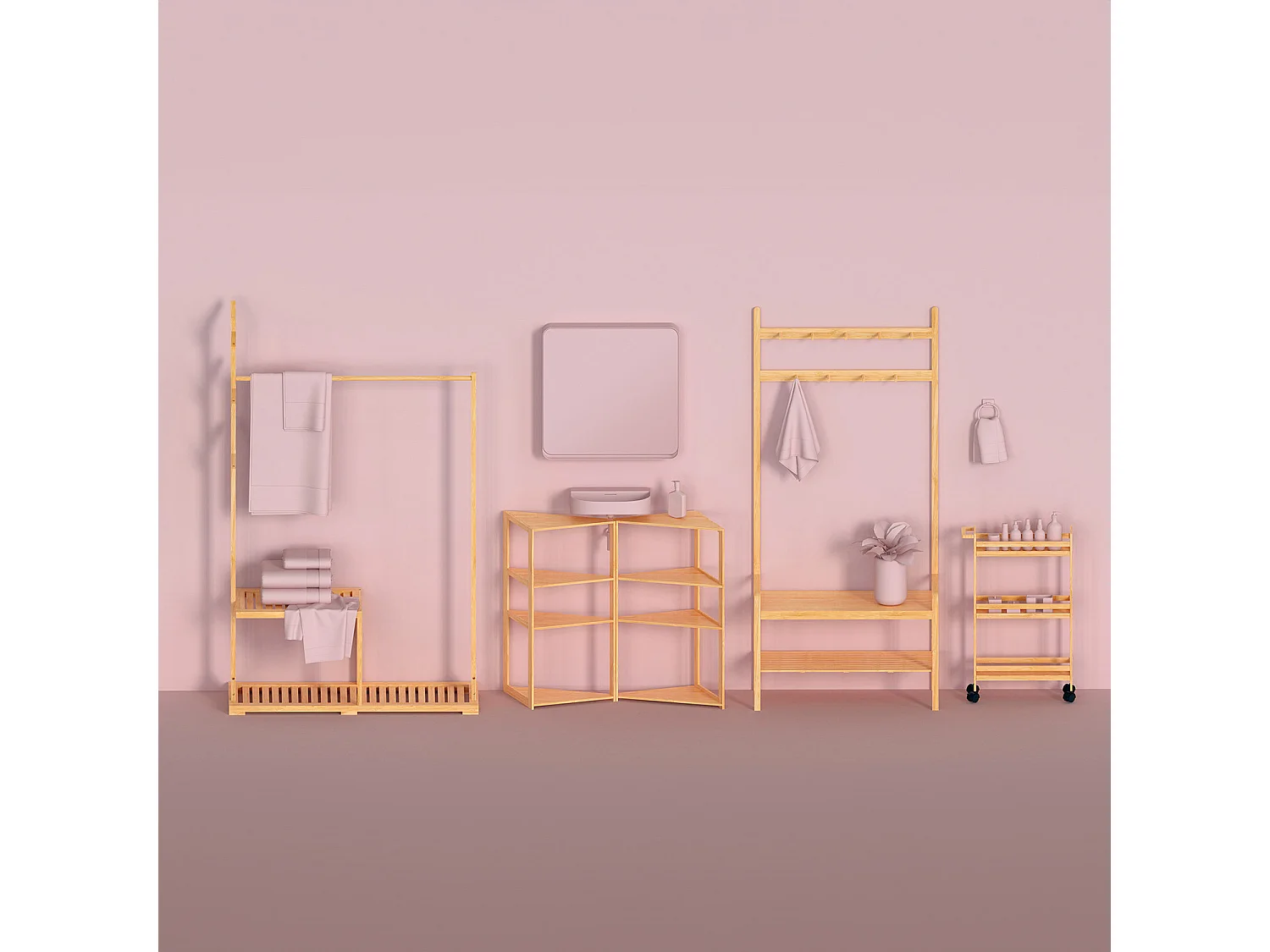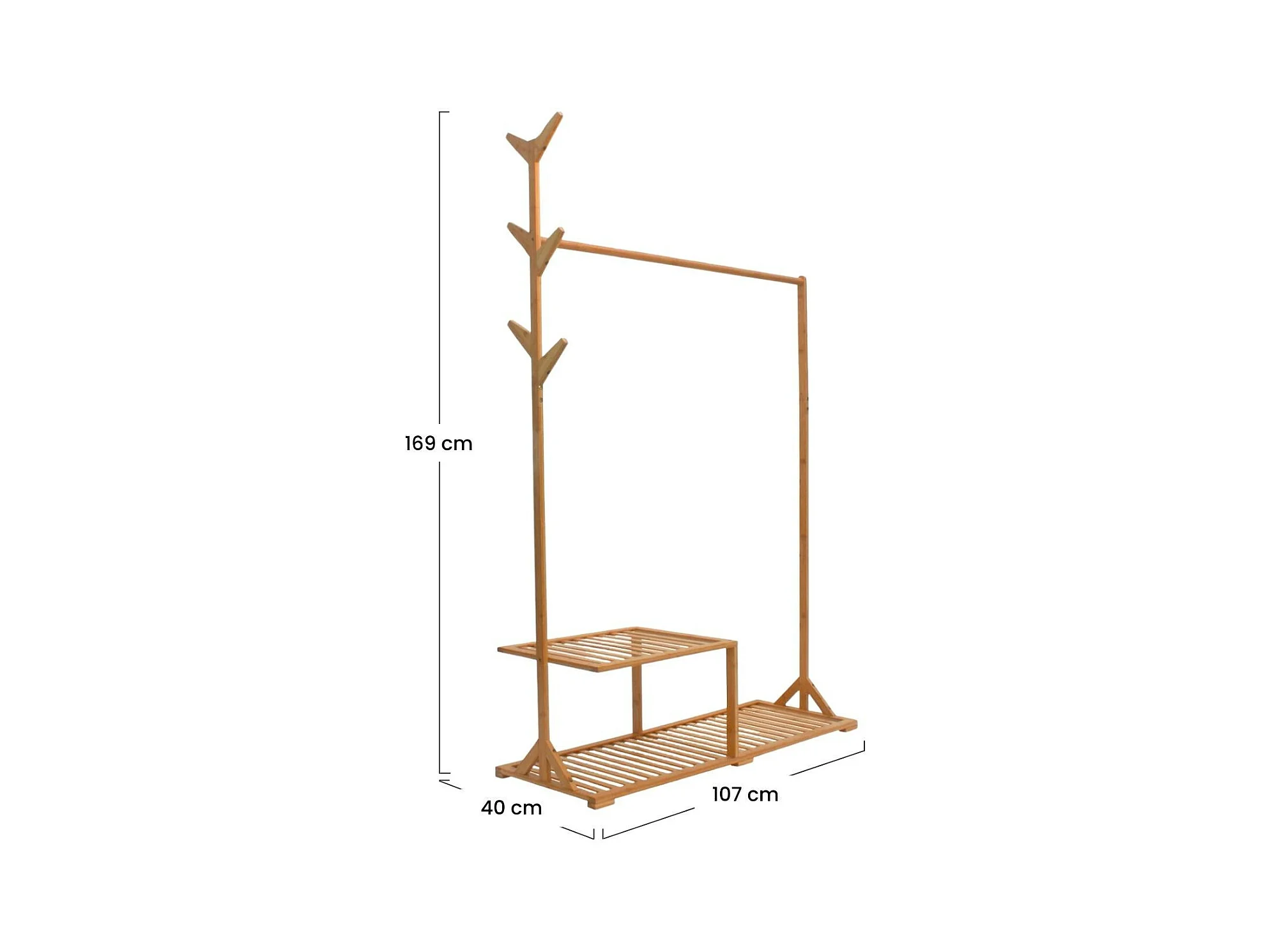 Porte-manteau, étagère à chaussures en bambou avec étagère 169x107x40cm O91