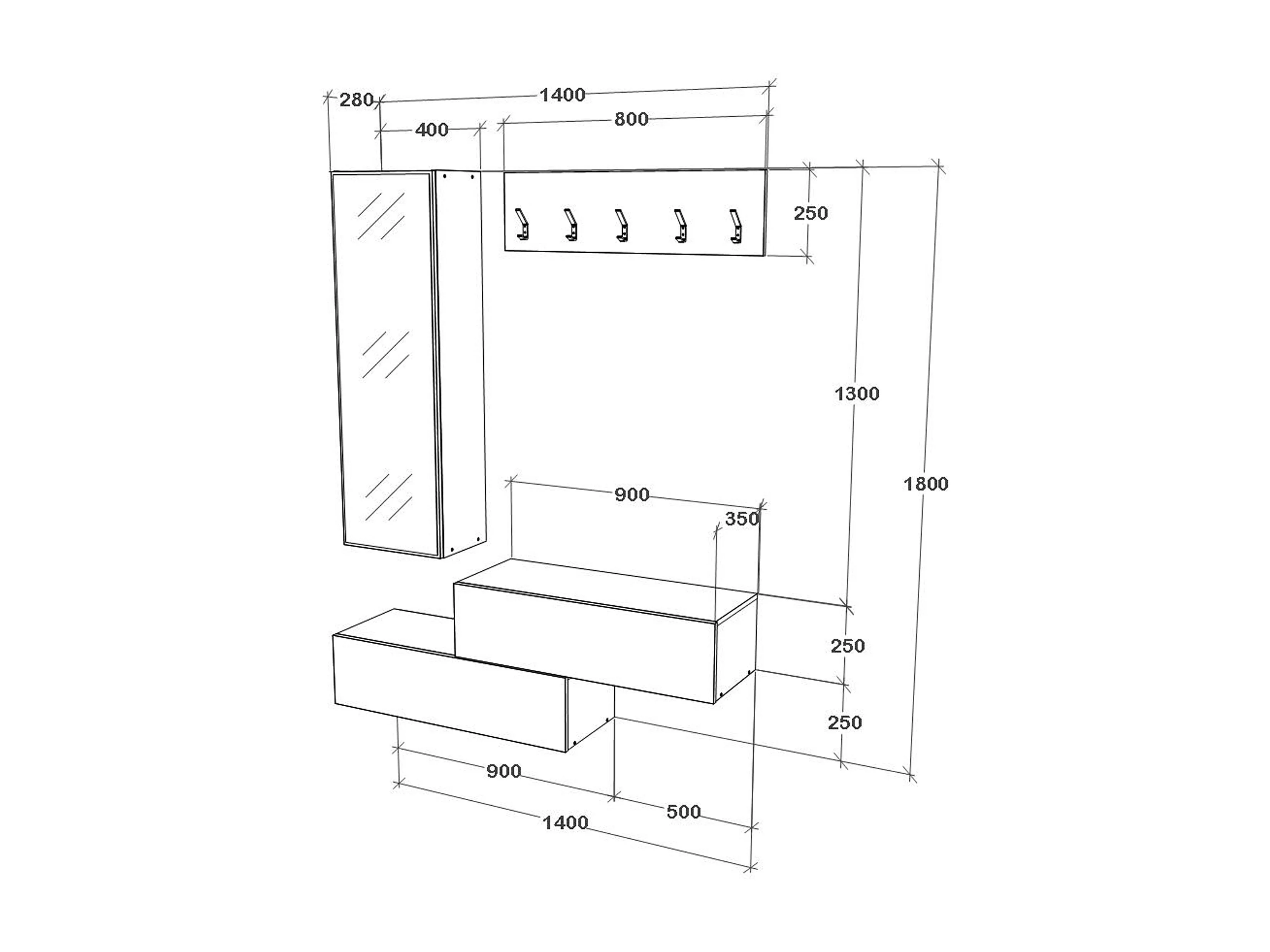 Porte-manteau haaus Diego, Chêne Blanc/Anthracite, 140 x 28 x 180 cm