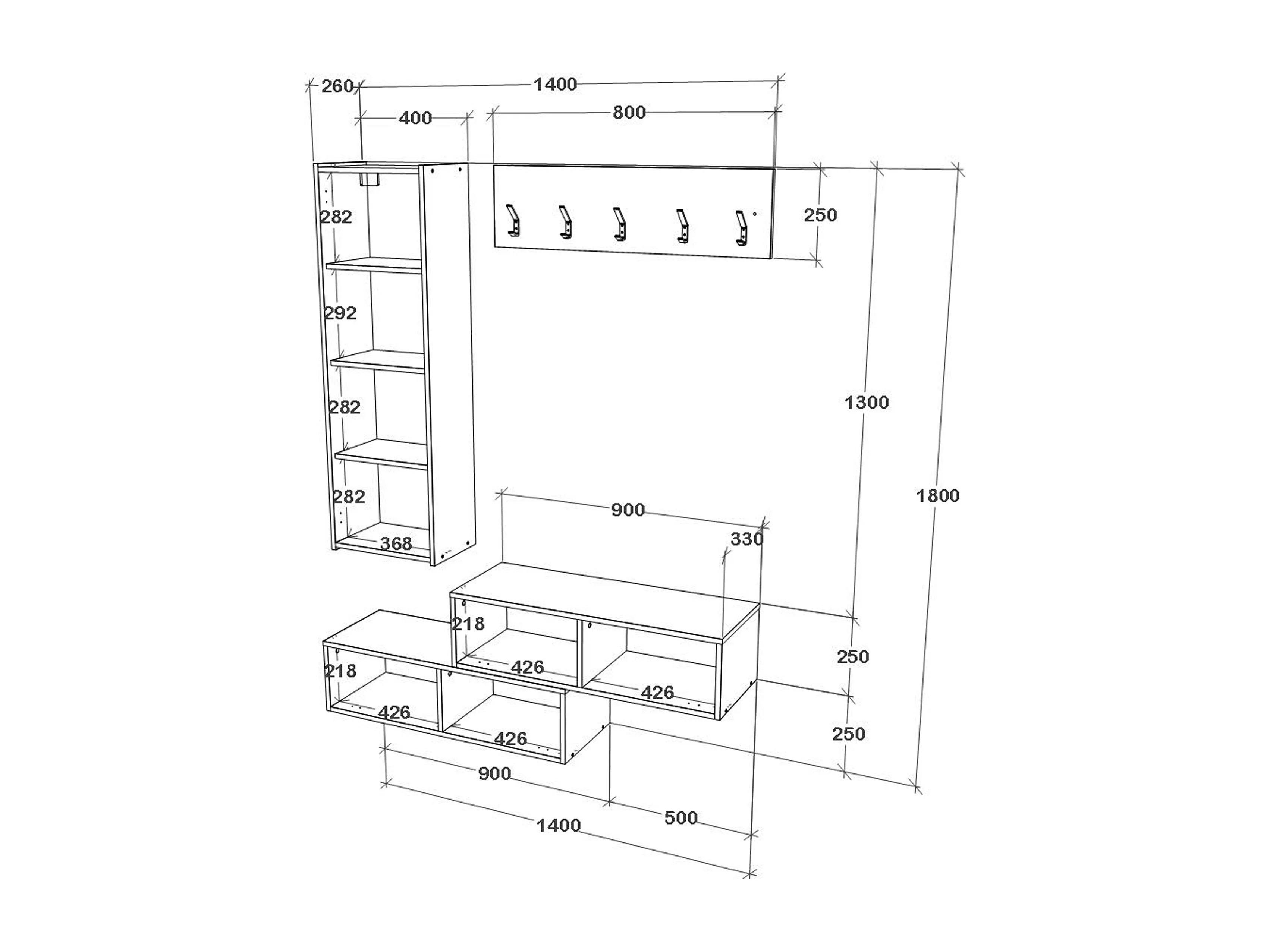Porte-manteau haaus Diego, Chêne Blanc/Crème Satinée, 140 x 28 x 180 cm