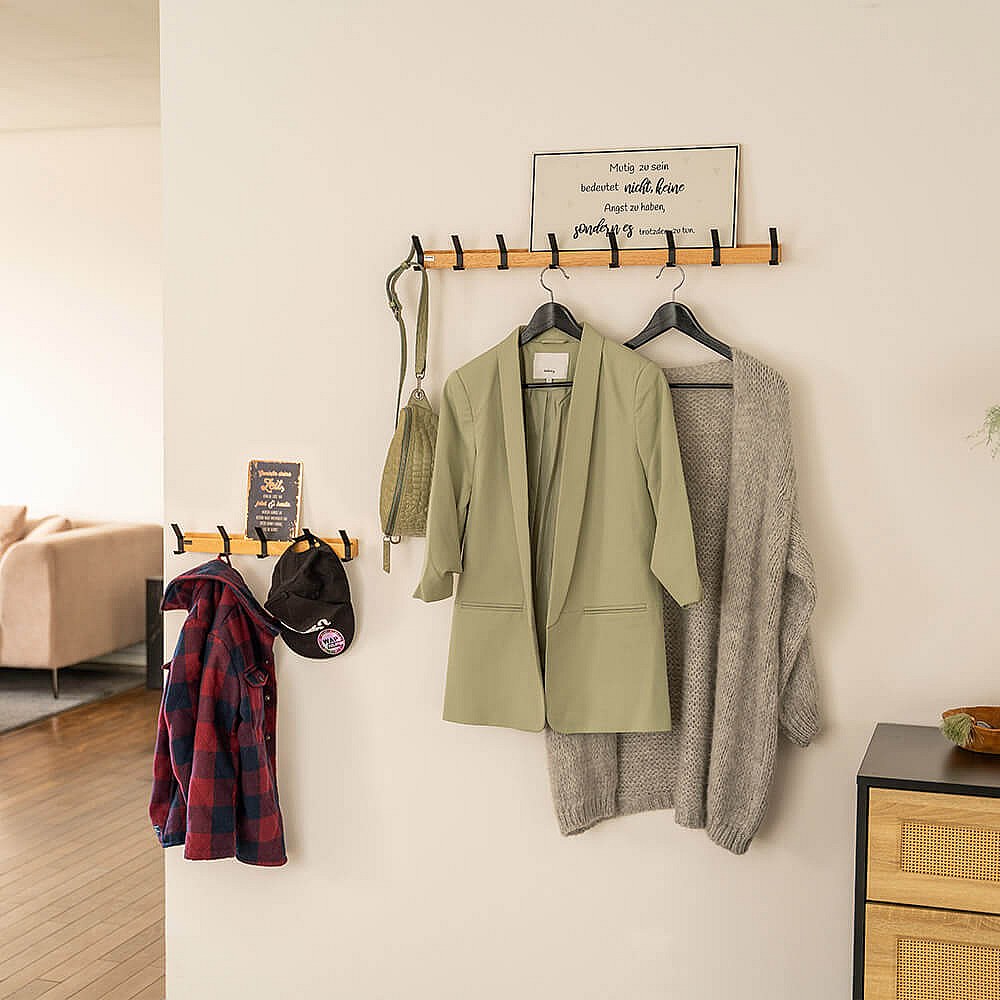 Porte-manteau HOME DELUXE STRIPE comprenant crochets, aimants et étagère à photos - 8 x crochets | Portemanteau mural, porte-crochets