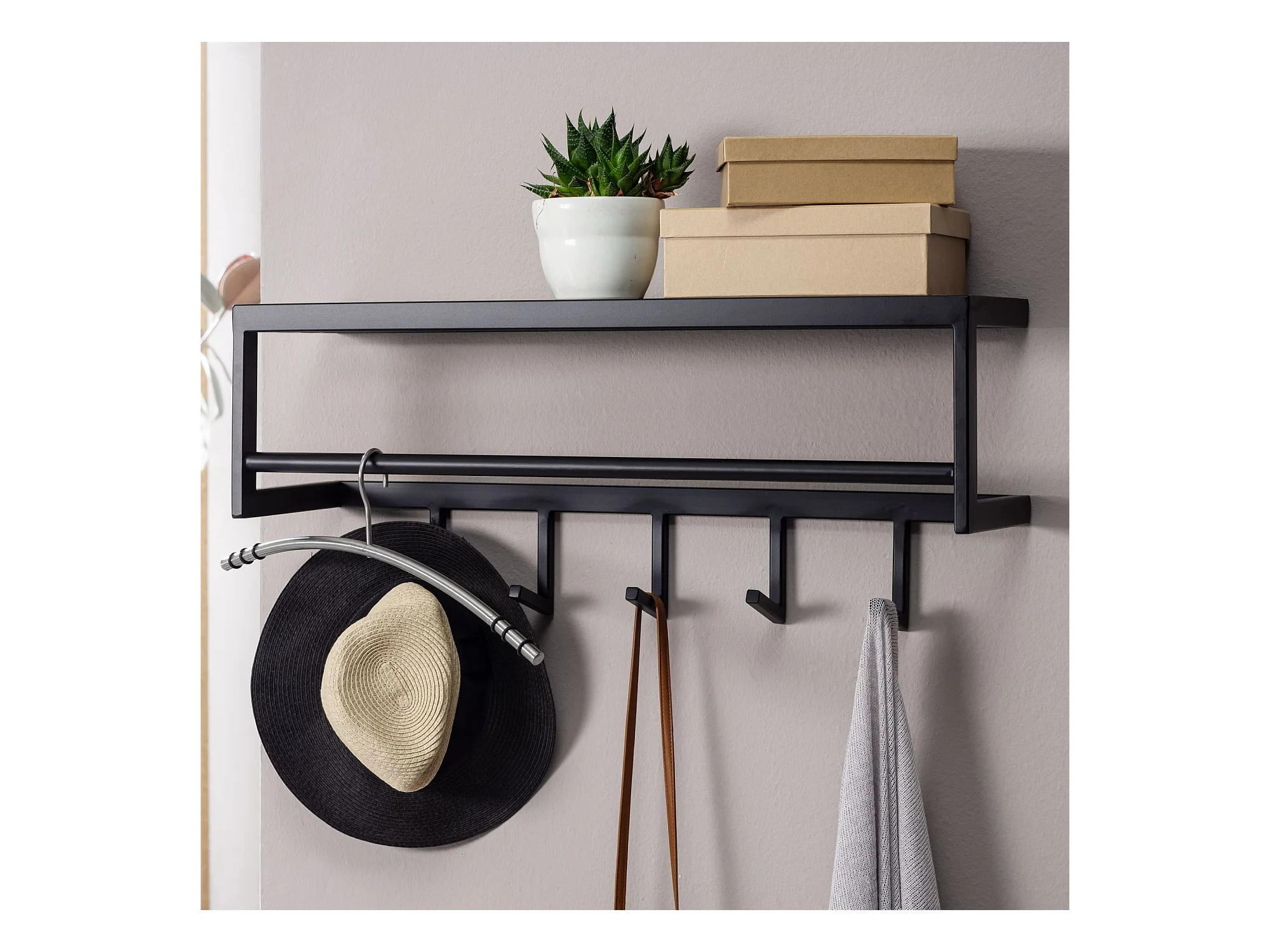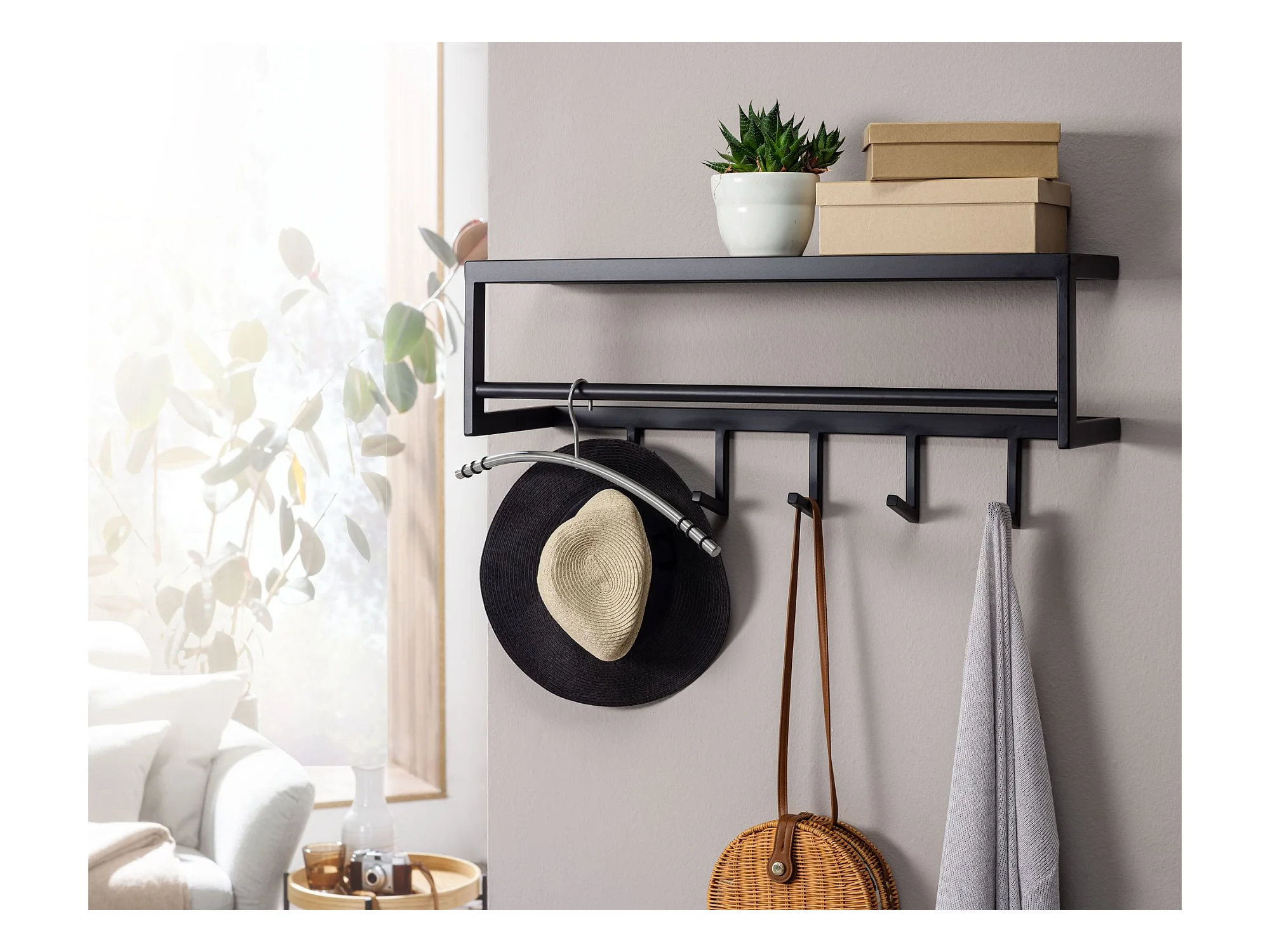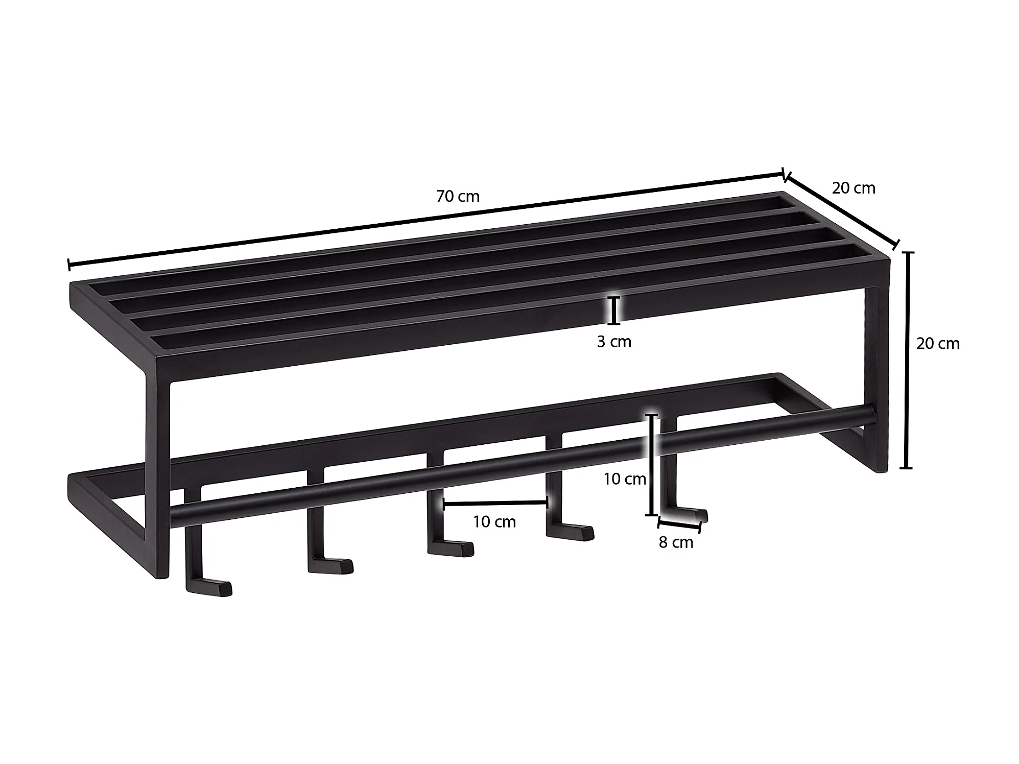 Porte Manteau Mural 5 Crochets Noir Metal 70 cm Patere Murale Étagère