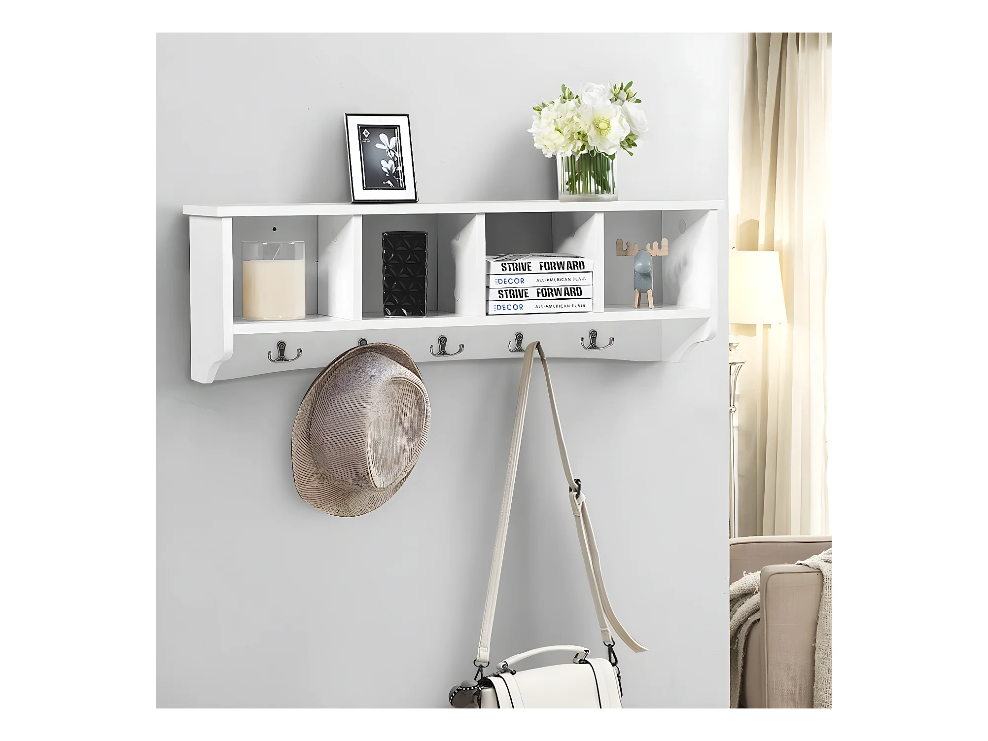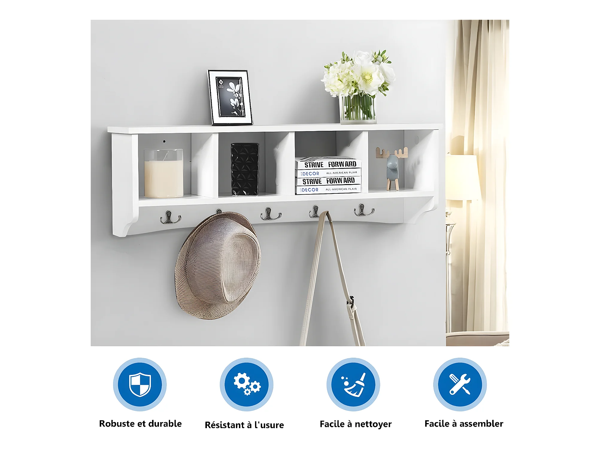 Porte-manteau mural avec 4 compartiments et 5 crochets doubles 72 x 15,5 x 23 cm