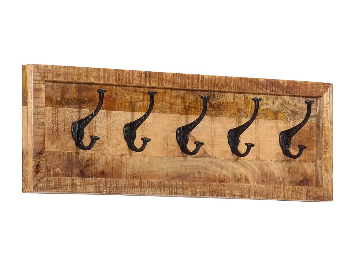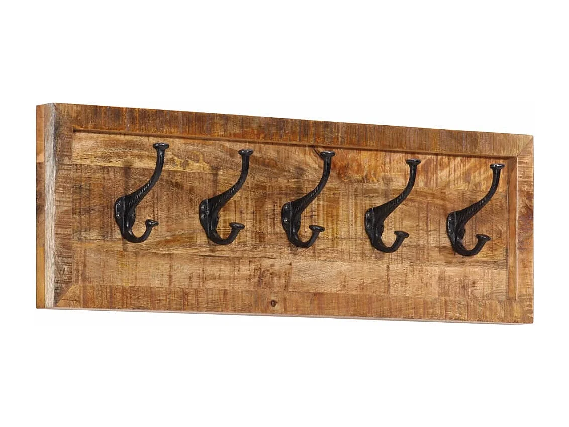 Porte-manteau mural avec 5 crochets bois de manguier massif