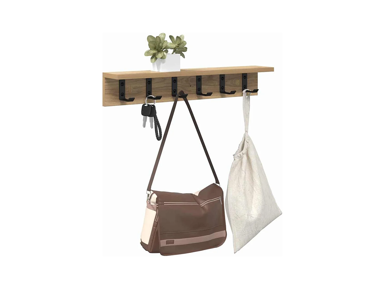 Porte-manteau mural chêne artisanal 60 x 10.5 x 10.5 cm