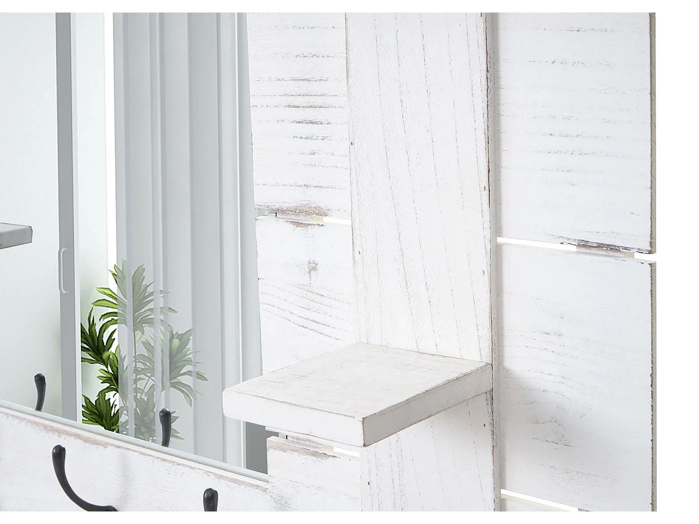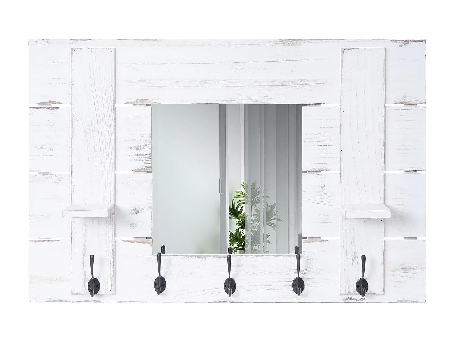 Porte manteau mural miroir bois blanche 90 x 14.5 x 60 cm 04_0000997