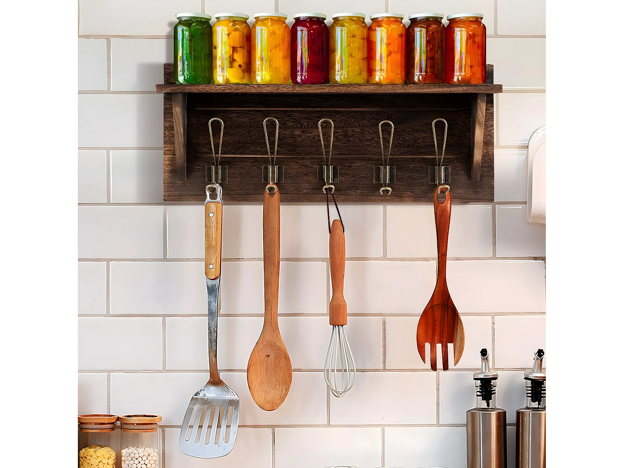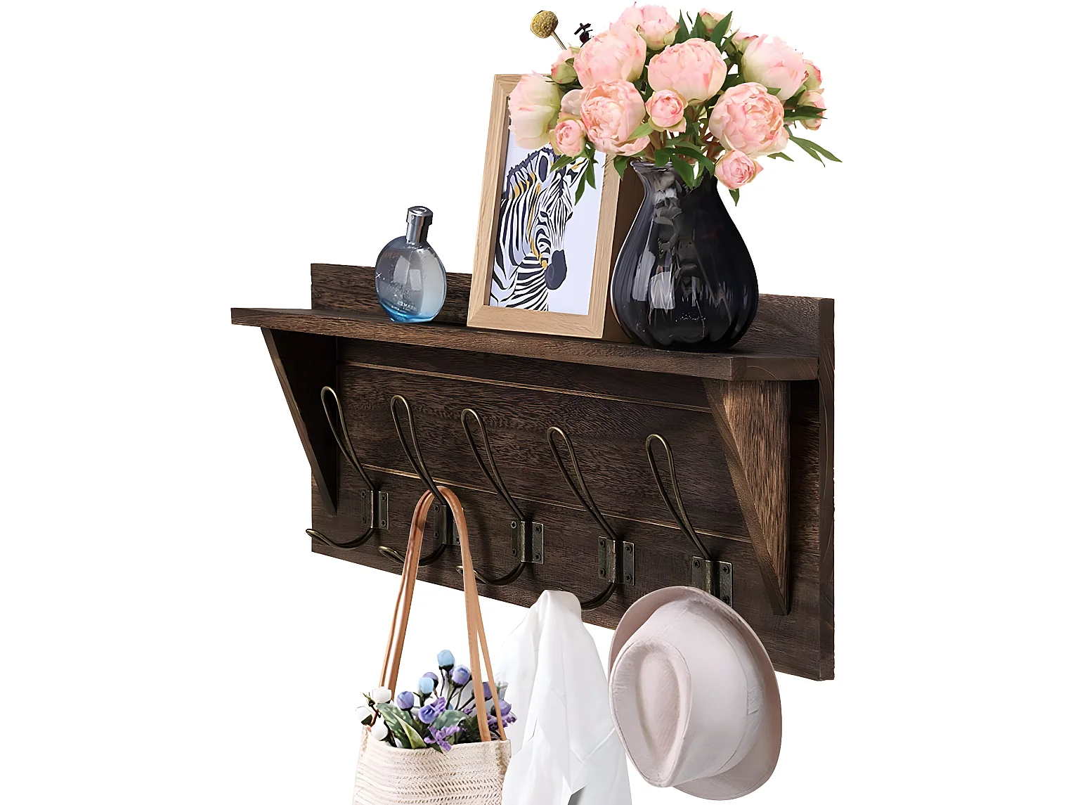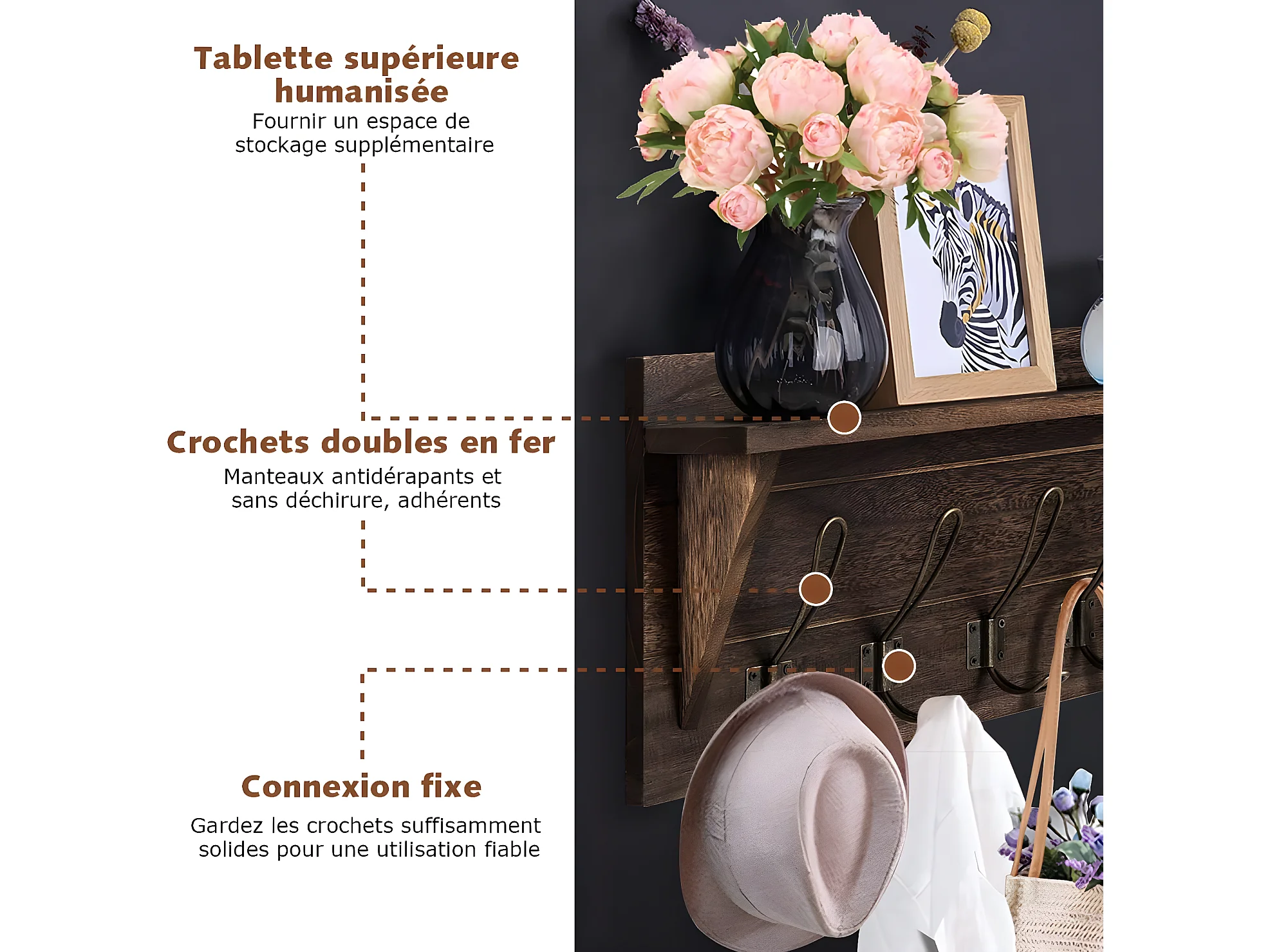 Porte-manteau mural, patères murales avec etagère, 61 cm x 8 cm x 25,5 cm