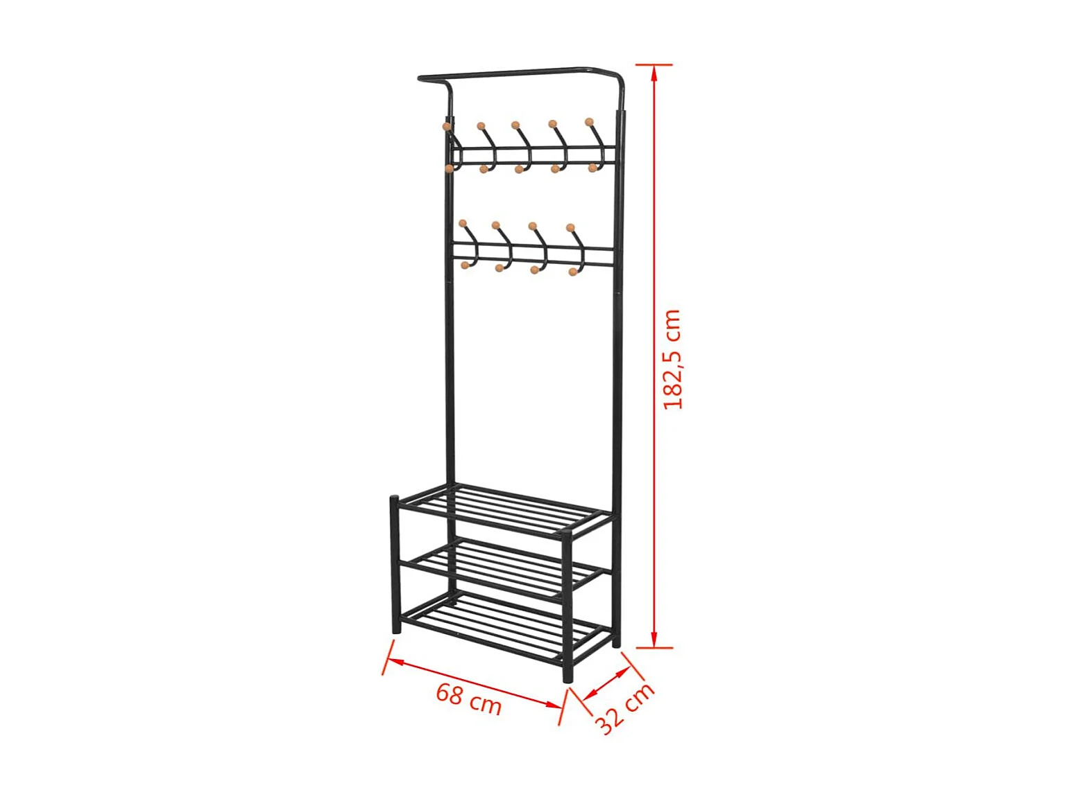Porte-manteau rangement pour chaussures noire 68 x 32 x 182 cm DEC024189