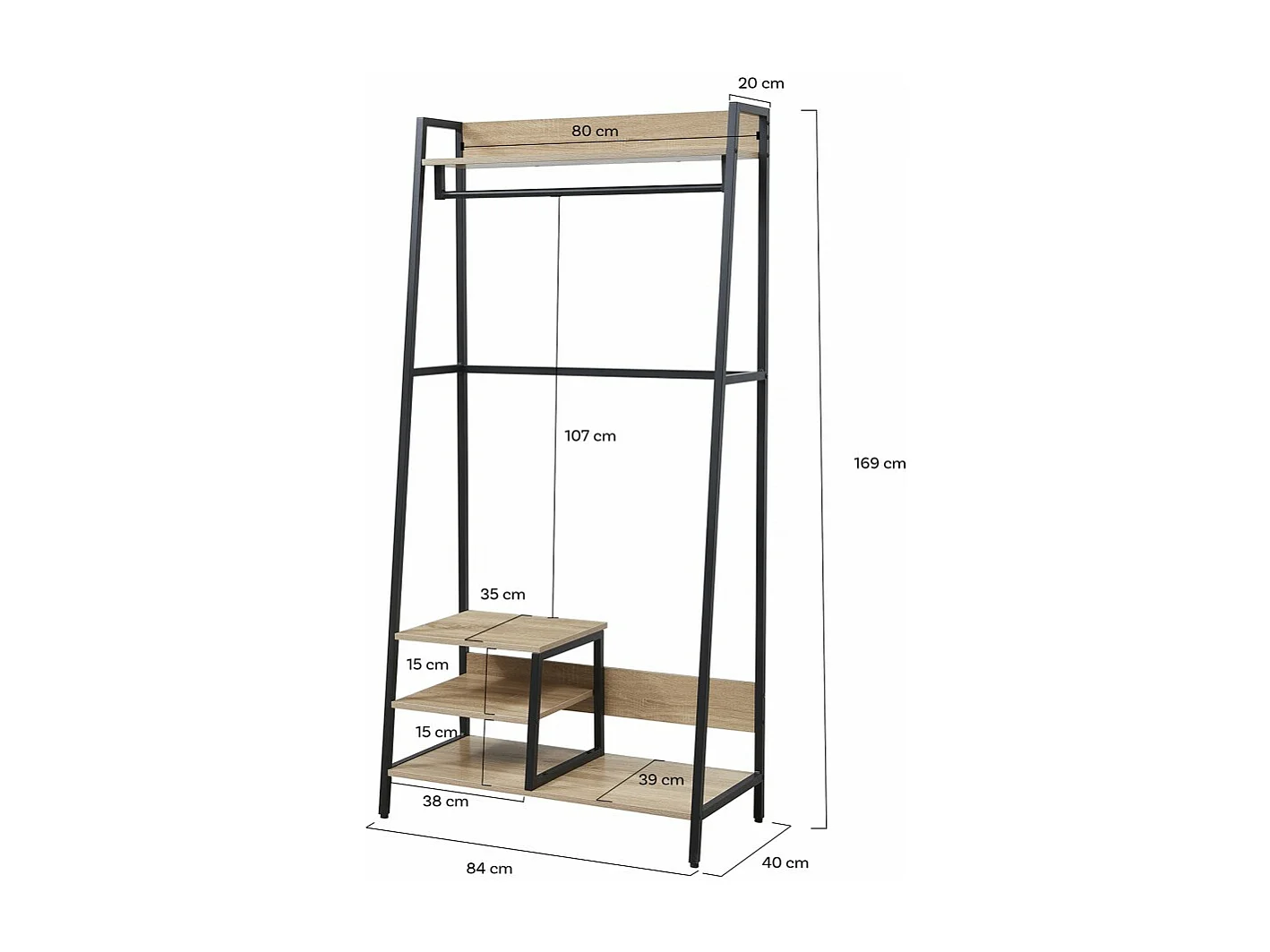 Porte manteau Vestiaire d'entrée avec étagères 169x40x84cm