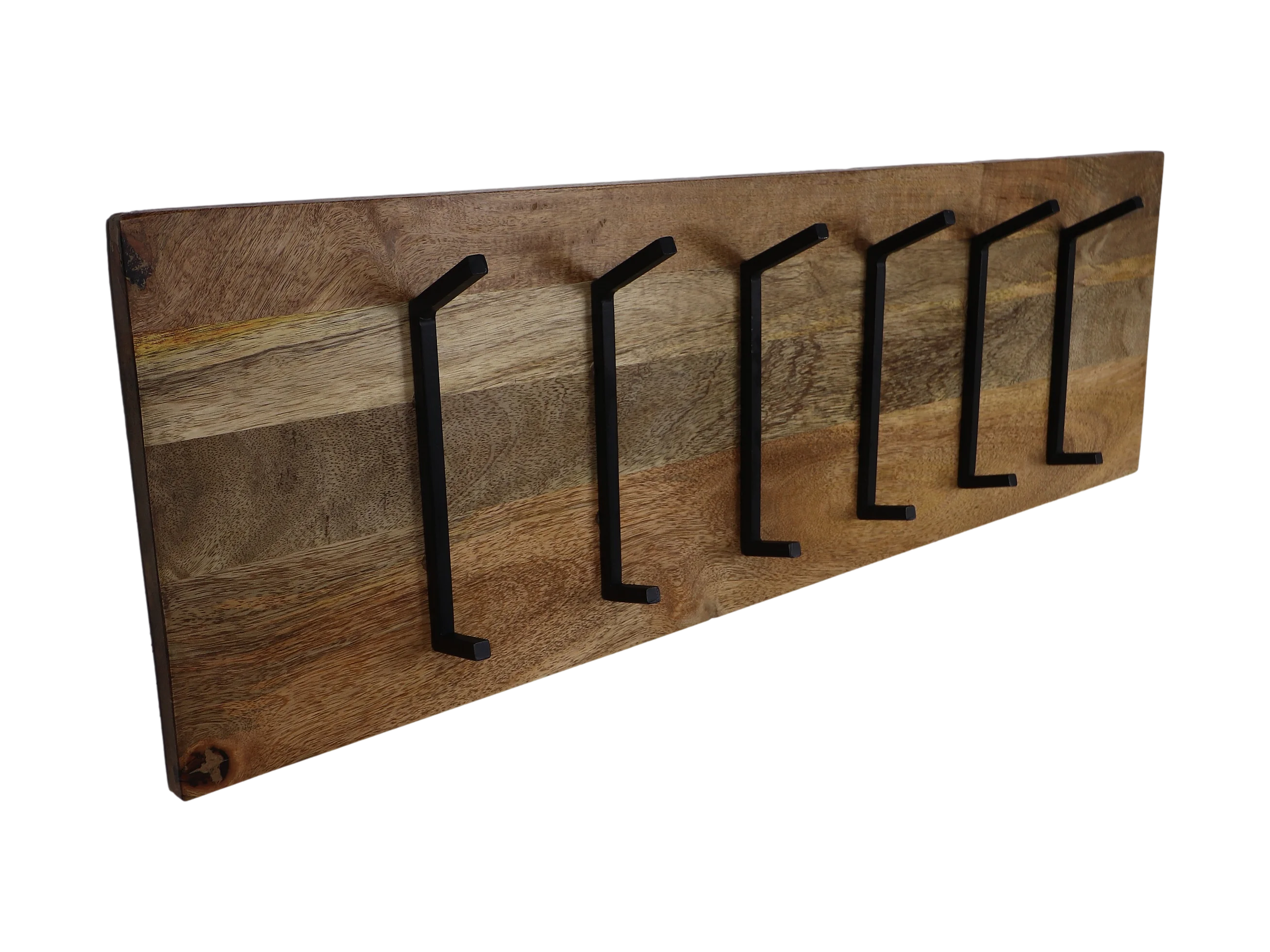 Porte-manteaux mural - Bois de manguier/Fer noir - Naturel/Noir - 90*11*30 cm