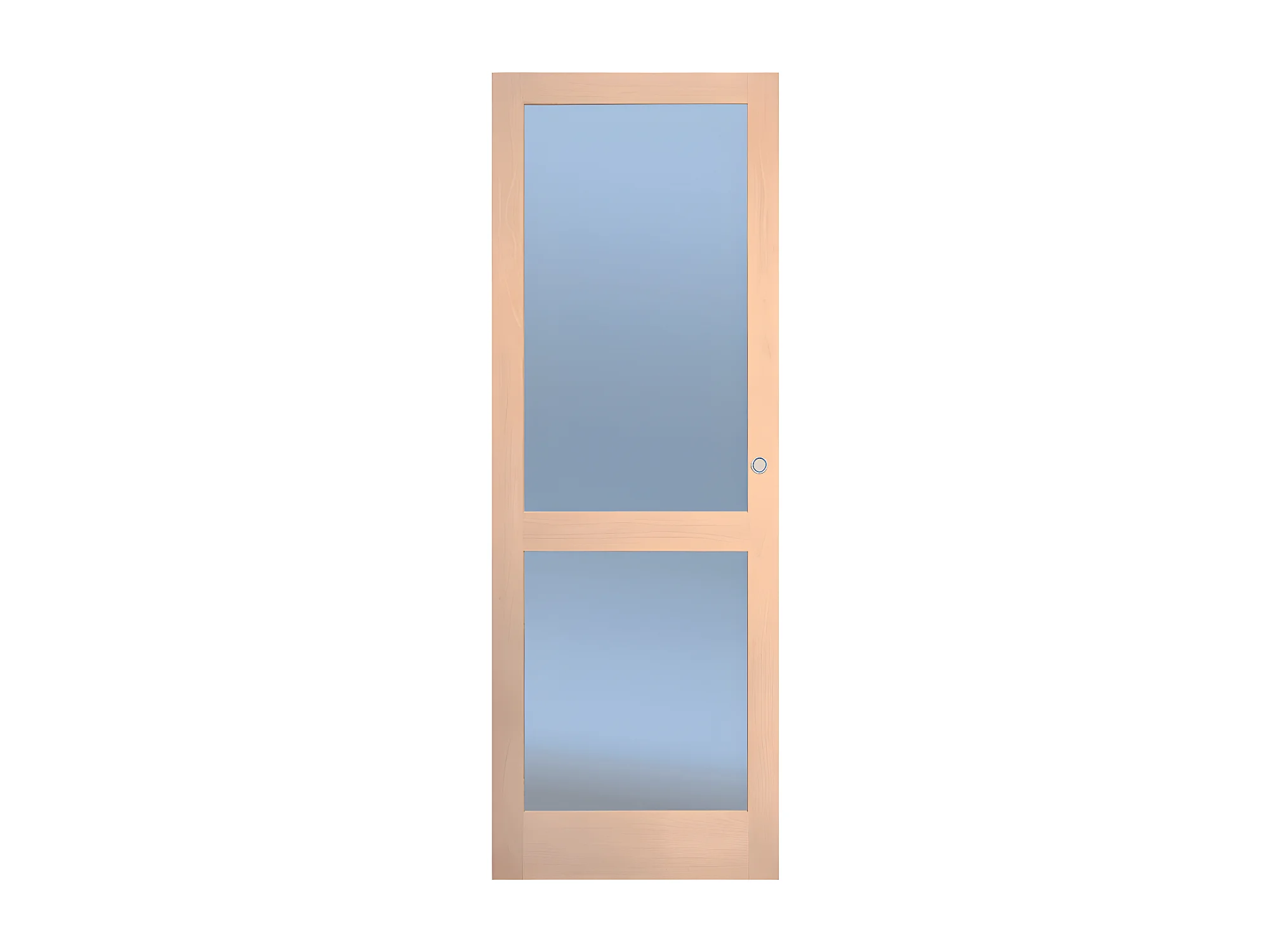 Porte nue, sans cadre, bois Erable, 73 cm, 2 carreaux, rive droite