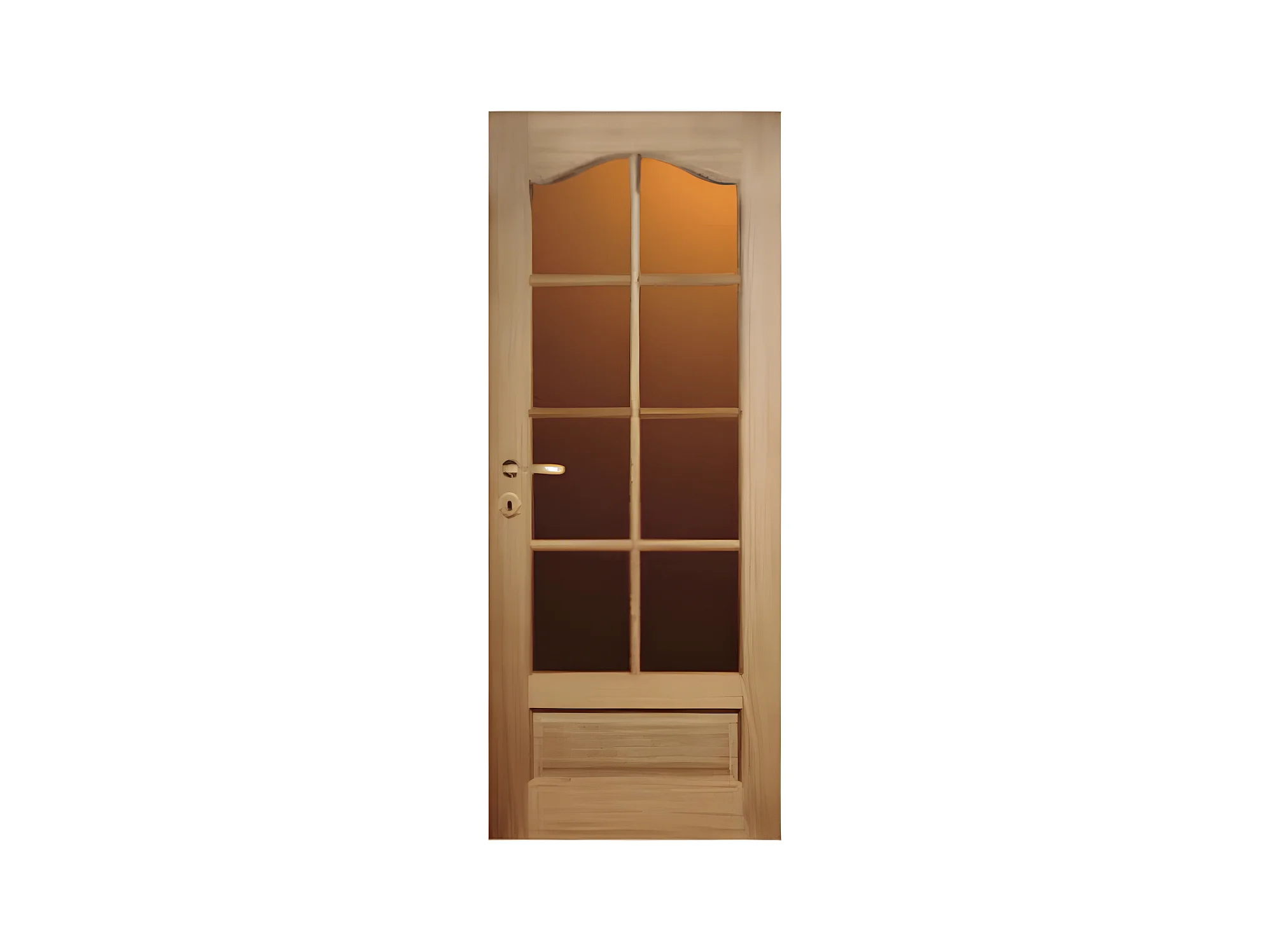 Porte nue, sans cadre, bois Bouleau : 8 carreaux, Chapeau de gendarme, 83 cm en rive droite