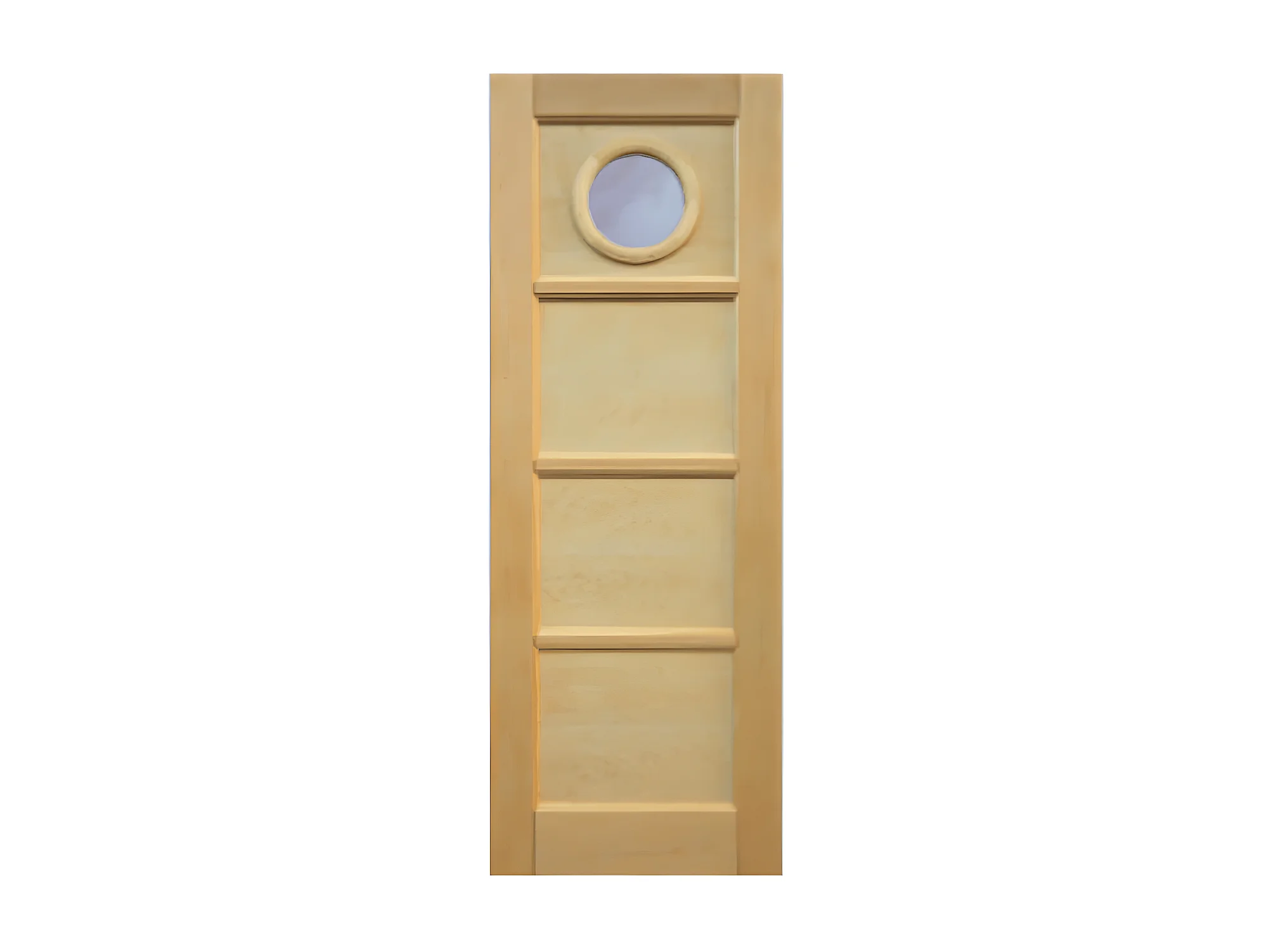 Porte nue, sans cadre, bois Erable, 73 cm, hublot, rive droite
