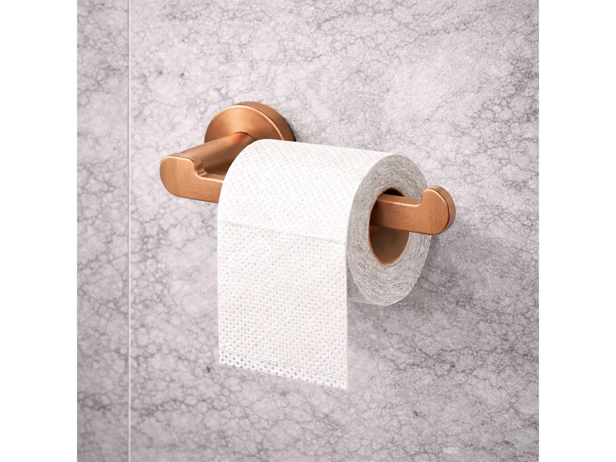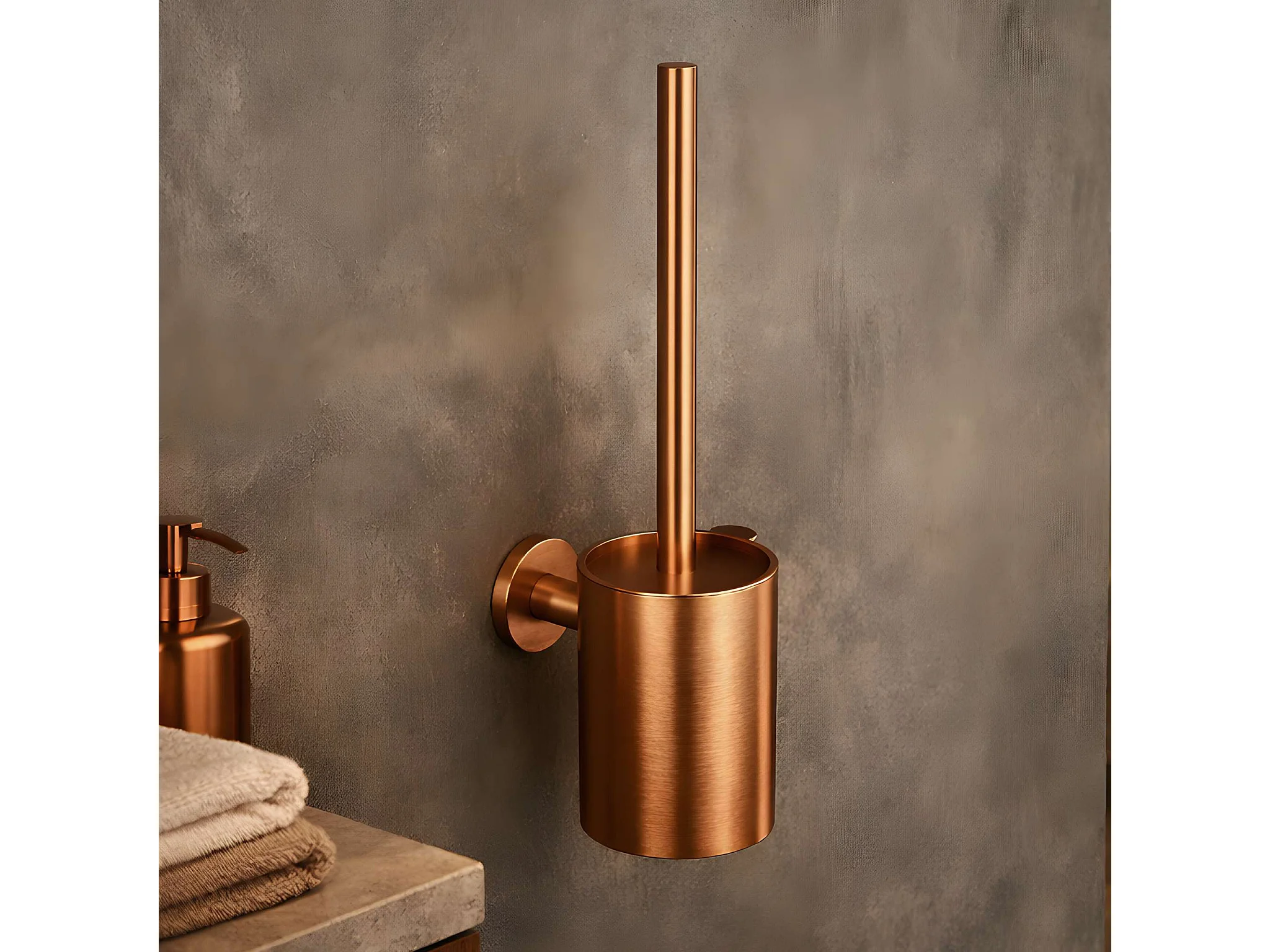 Porte papier toilette et Porte-balai WC - acier inoxydable S.304 cuivré brossé - Fixation Collée ou Vissée