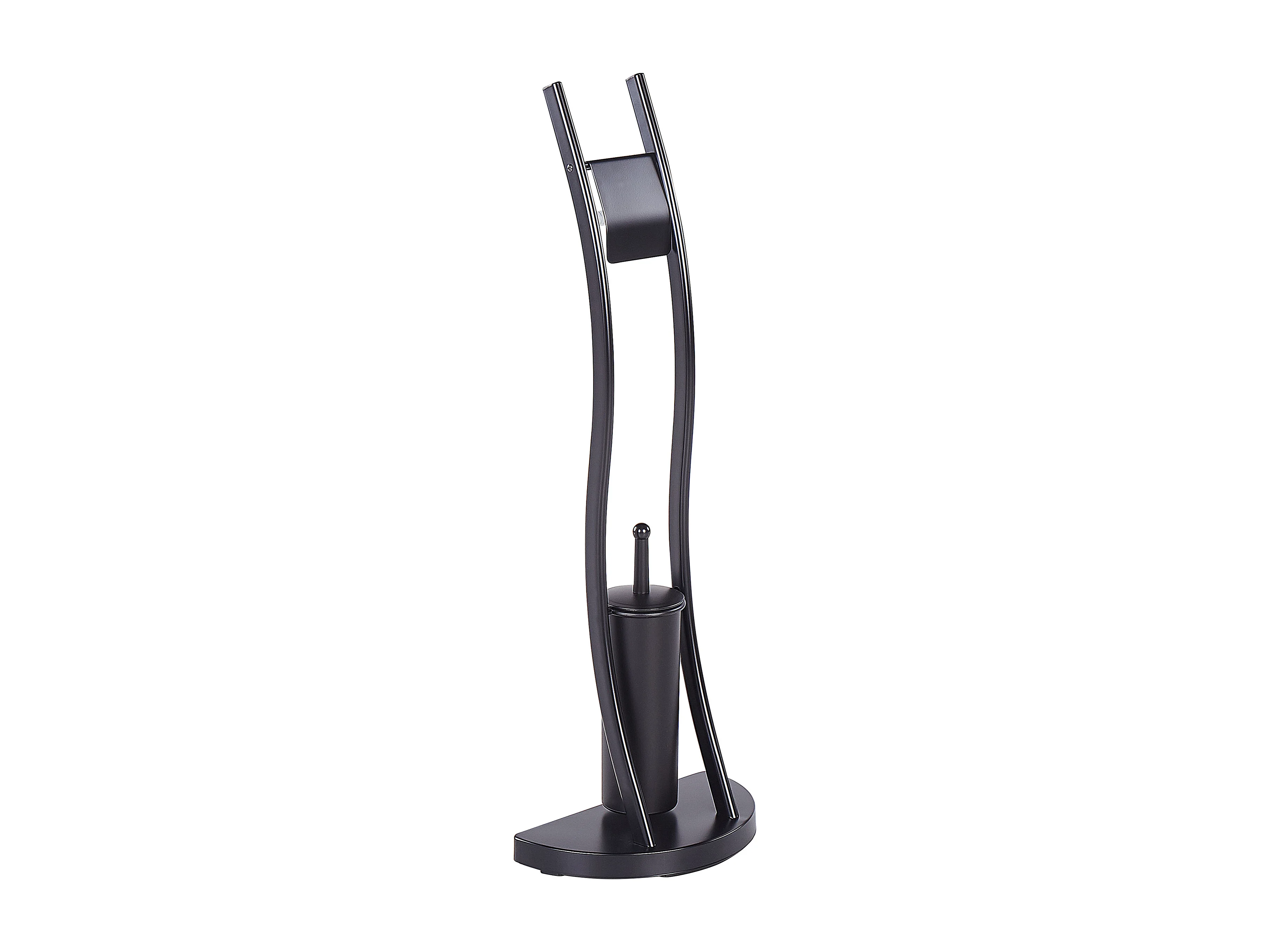Porte-papier toilette TOMA support sur pied avec porte brosse à WC, en métal noir