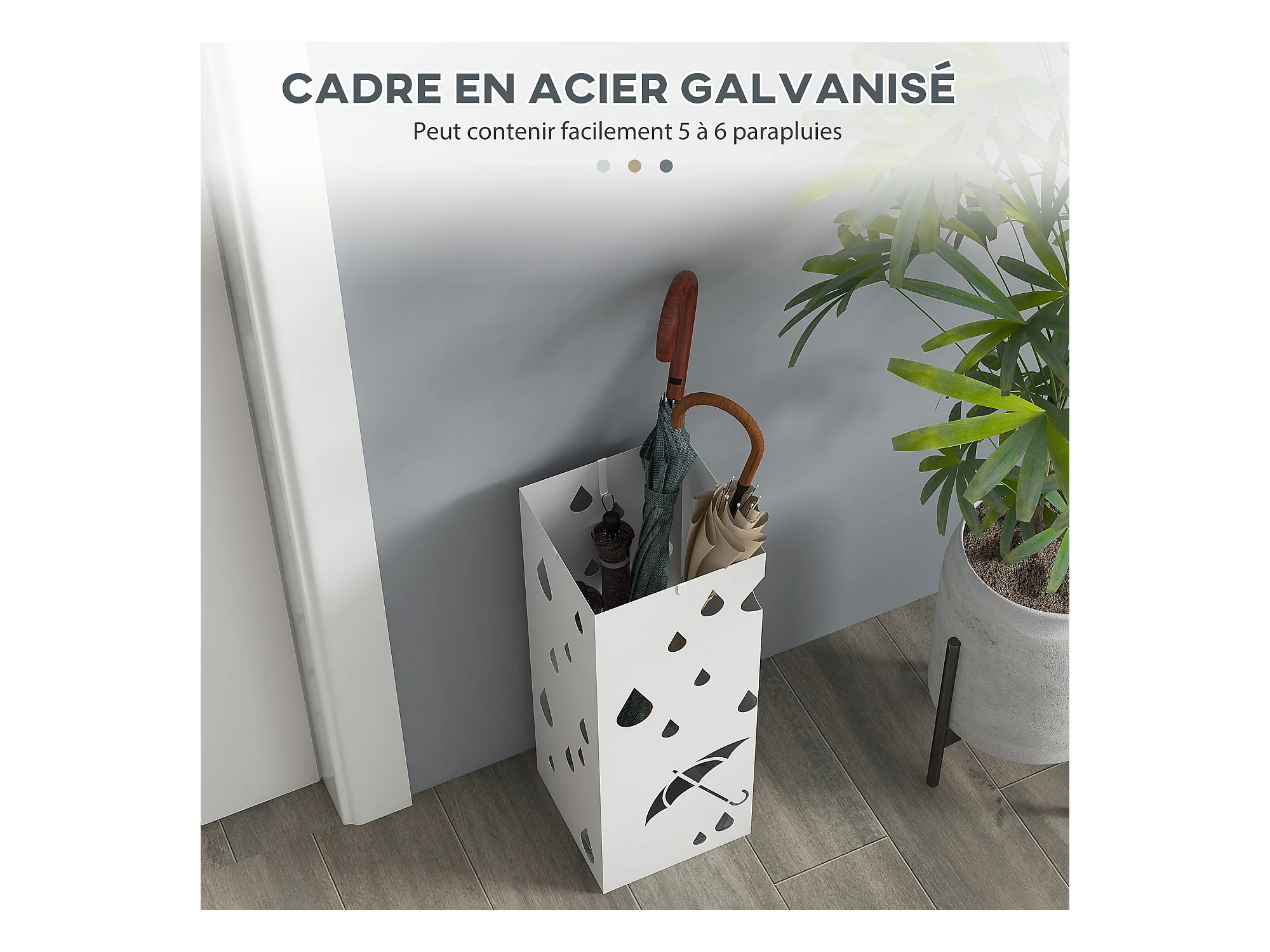 Porte-parapluie carré à rangement Blanc Acier 48,5cm