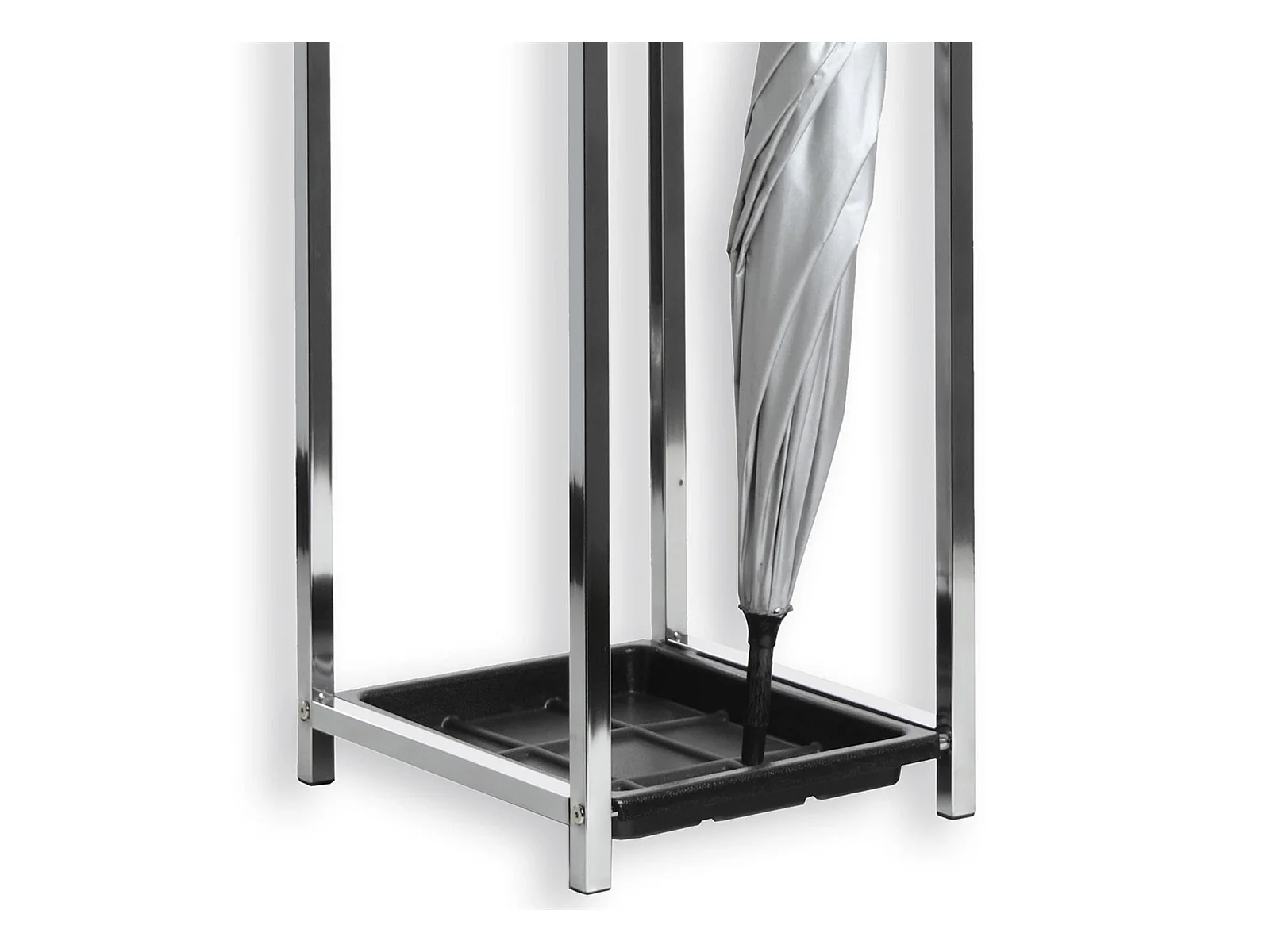 Porte-parapluie NELIA support pour parapluies ou cannes avec séparation et réceptacle d'eau, structure en métal chromé