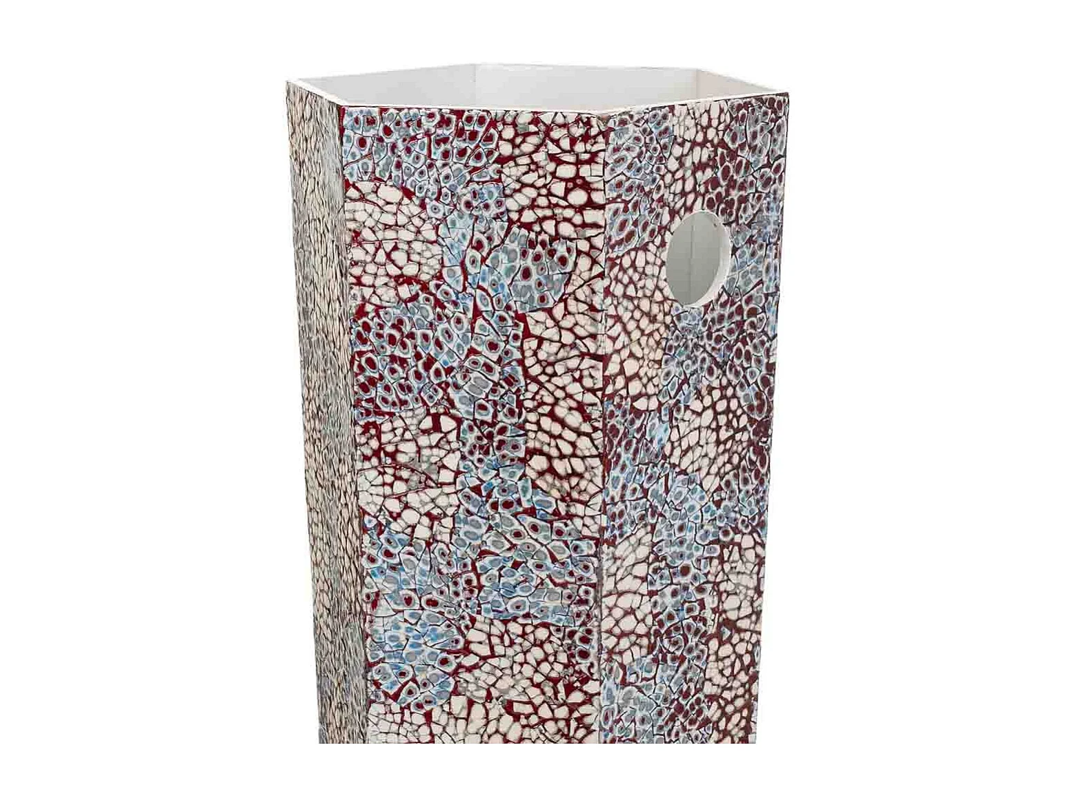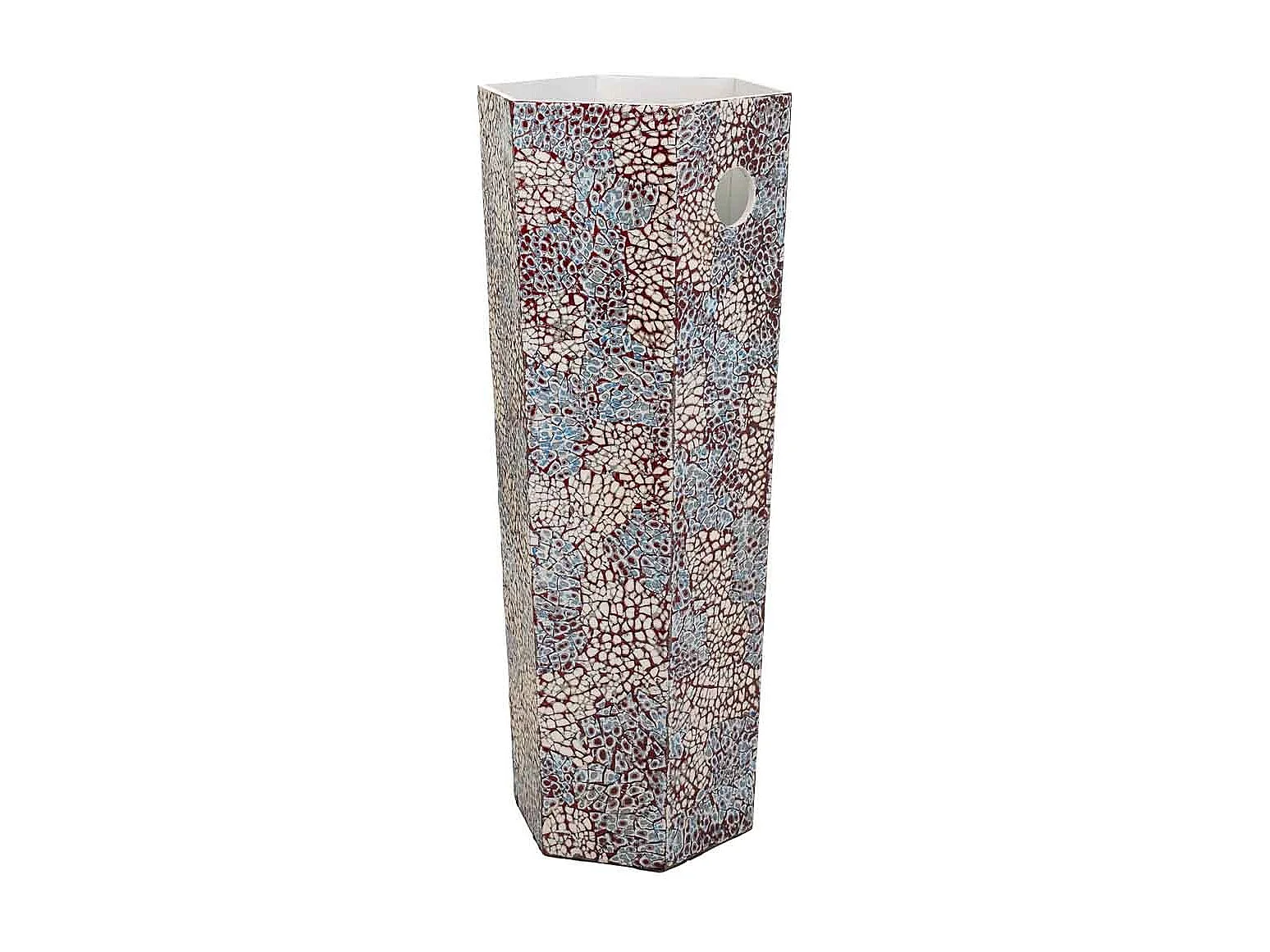 Porte-parapluies en capiz blanc, rouge et bleu imprimé, 24 x 24 x 58 cm (hauteur)