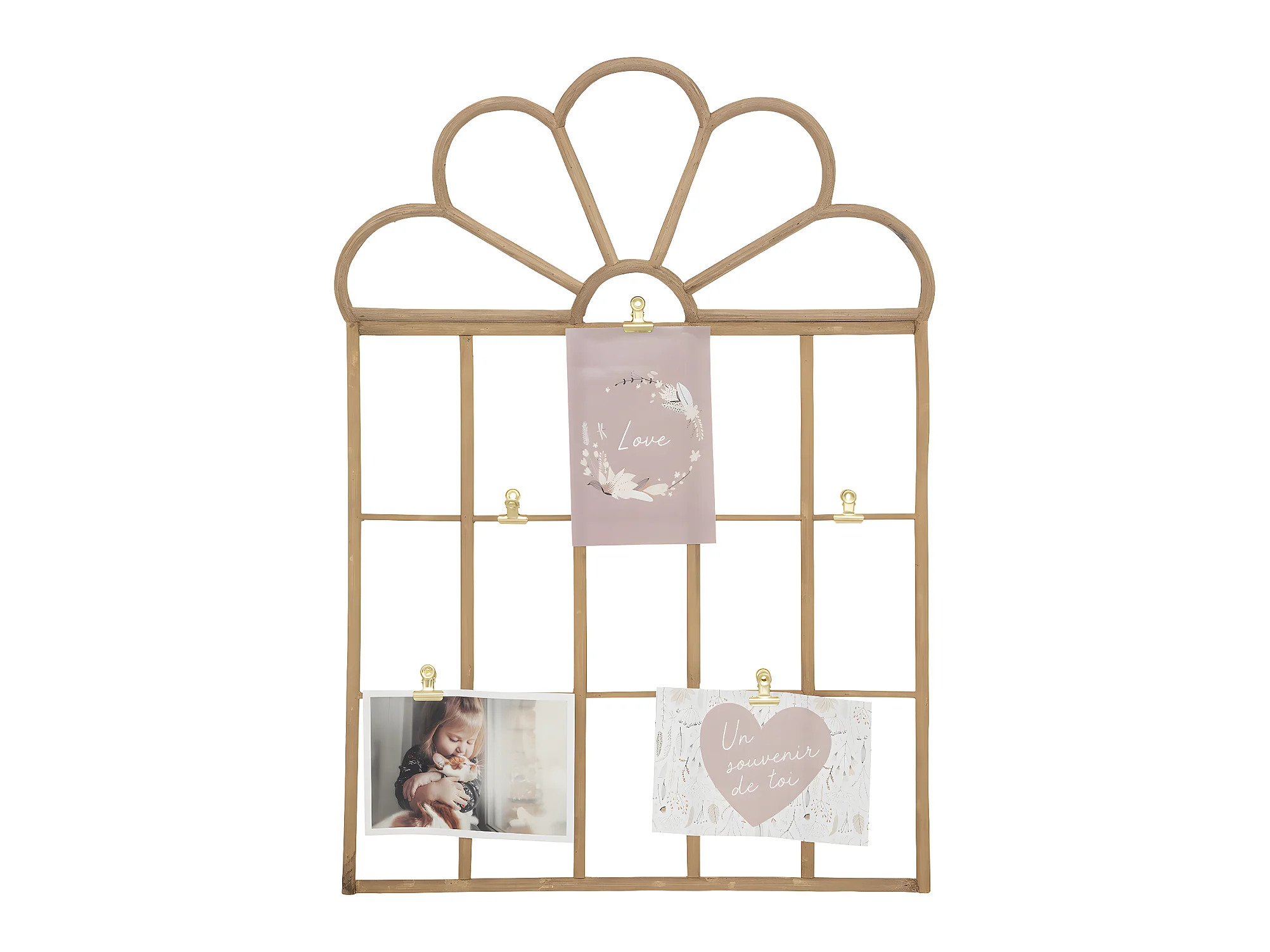Porte-photos enfant en Rotin avec clips en acier doré 40 x 57 cm
