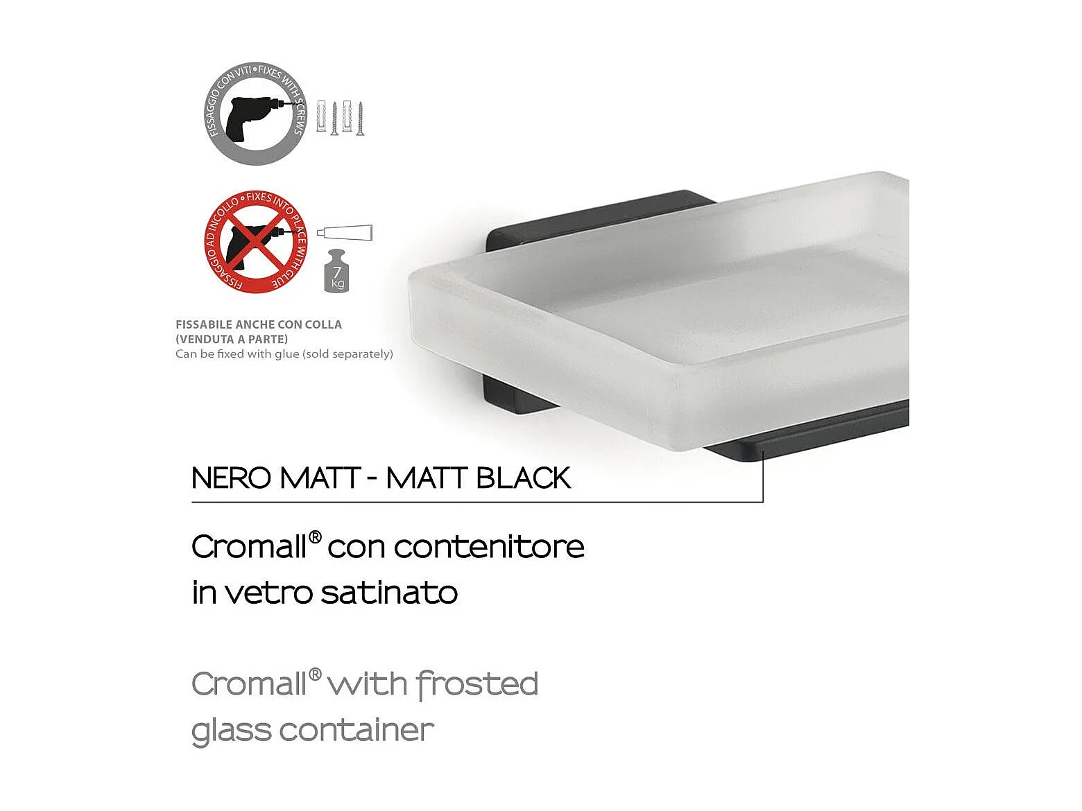 Porte-Savon En Verre Satiné Support Noir | Atene