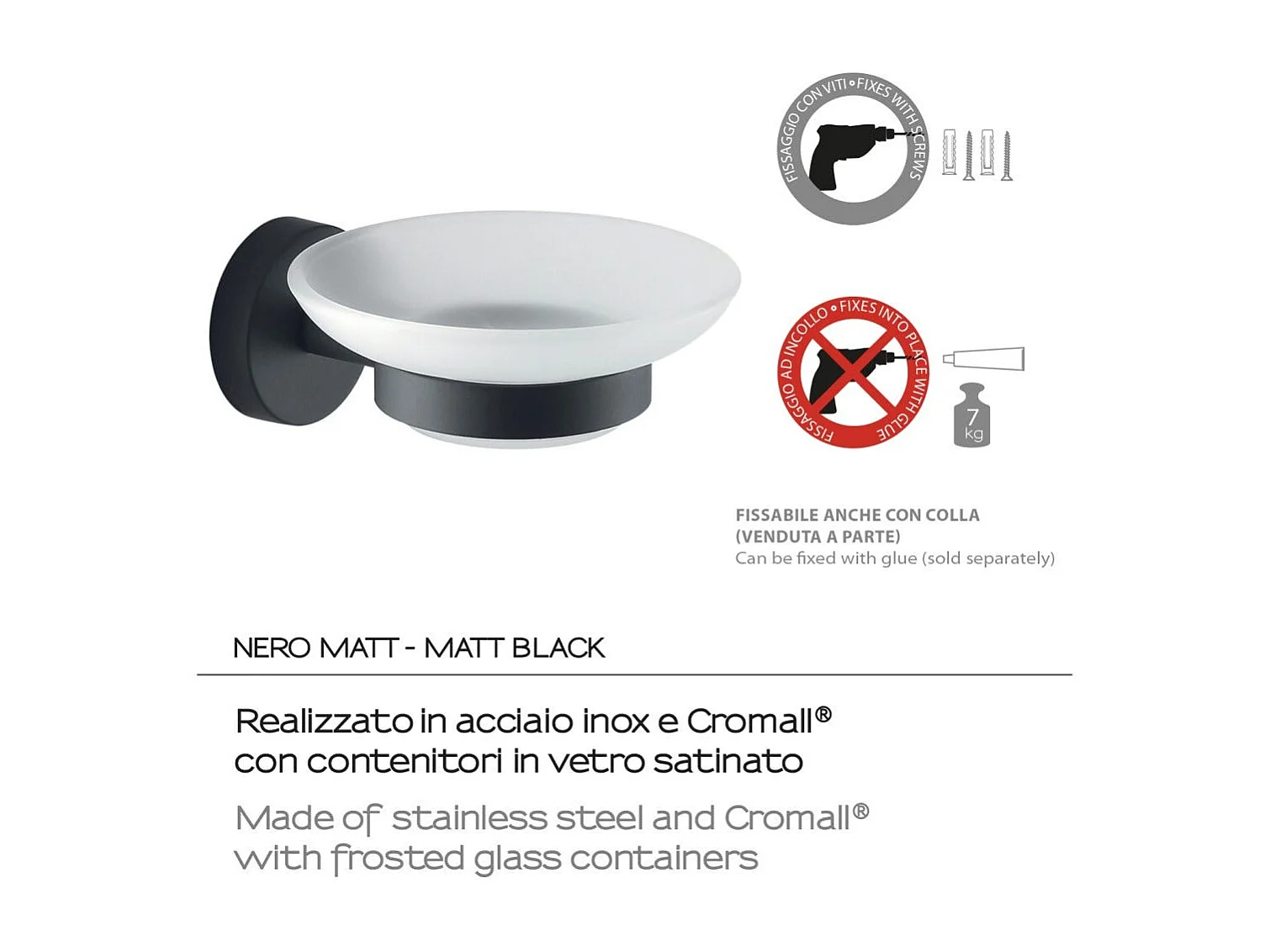 Porte-Savon Mural En Verre Et Acier Inoxydable Noir Mat | Violetta